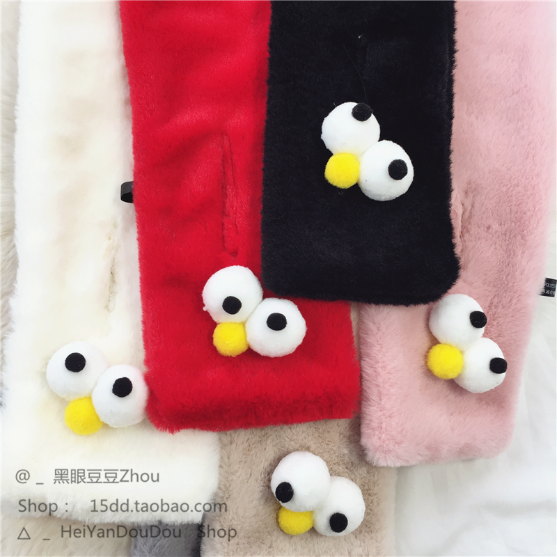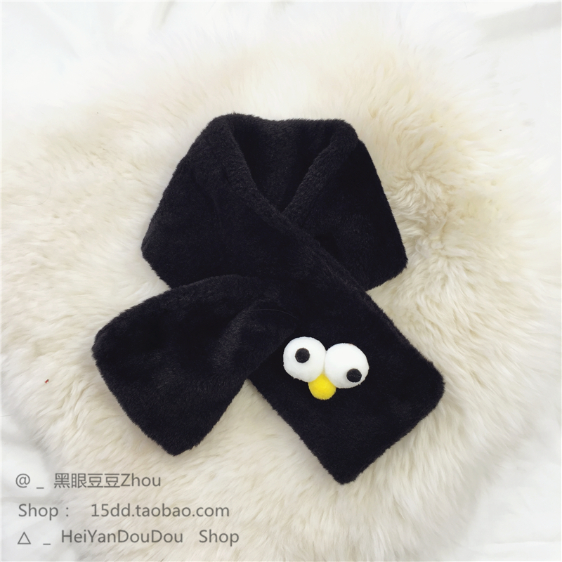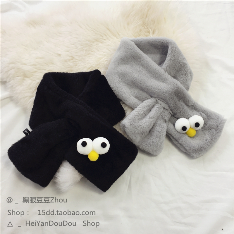 韓國毛絨立體眼睛圍巾女親子秋冬韓版純色學生保暖交叉小圍脖毛領1入