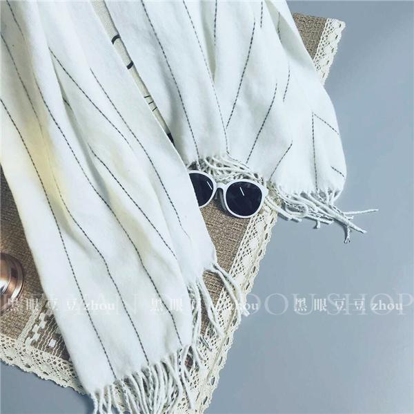 韓國新款秋冬加厚復古豎條紋流蘇邊仿羊絨保暖圍巾披肩女韓版學生1入