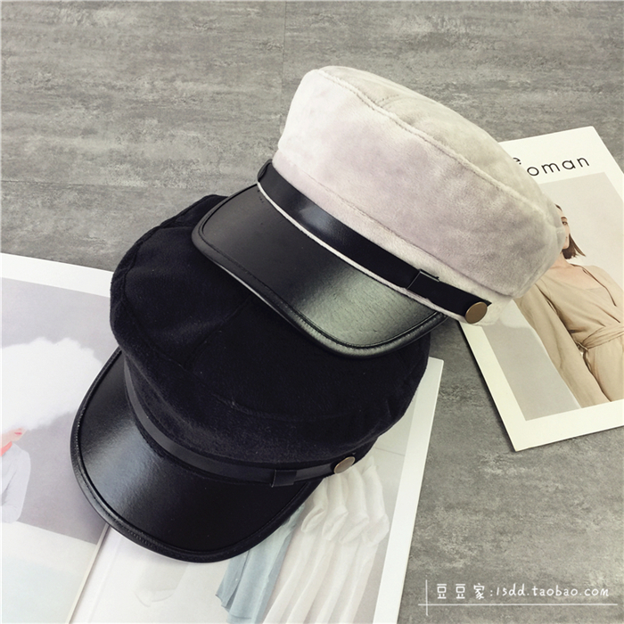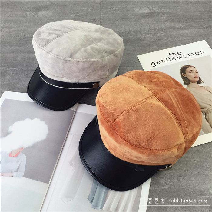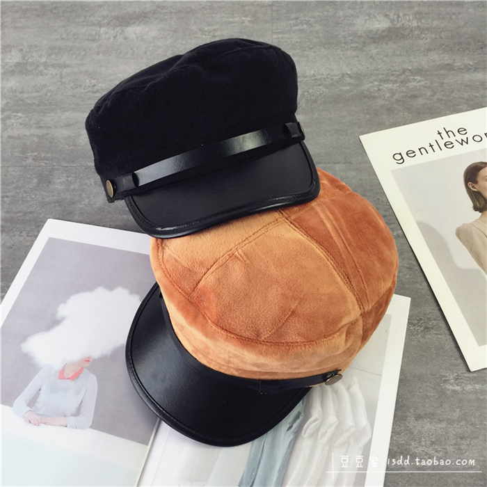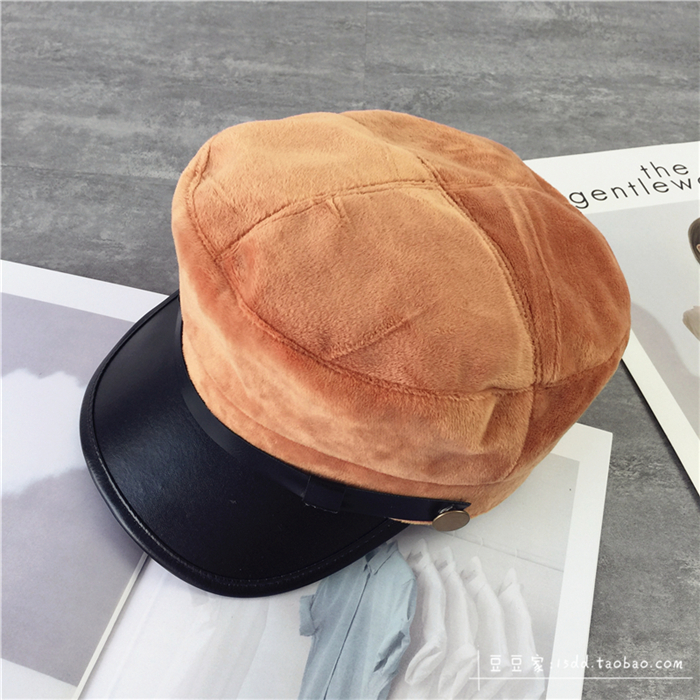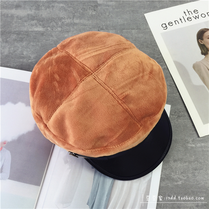 韓版毛絨平頂八角帽男女休閑秋冬貝雷帽百搭英倫復古鴨舌帽軍帽潮1入