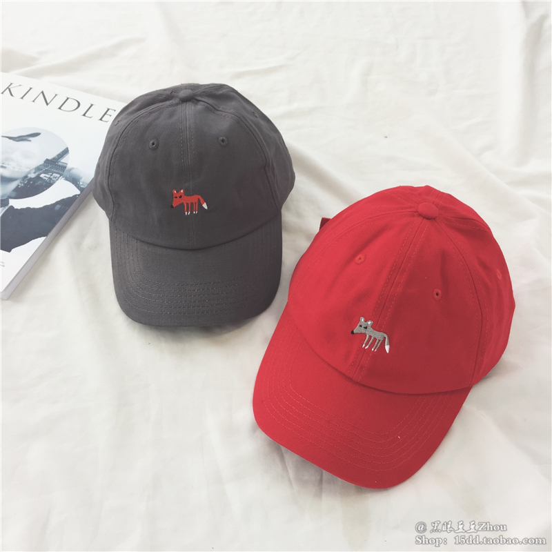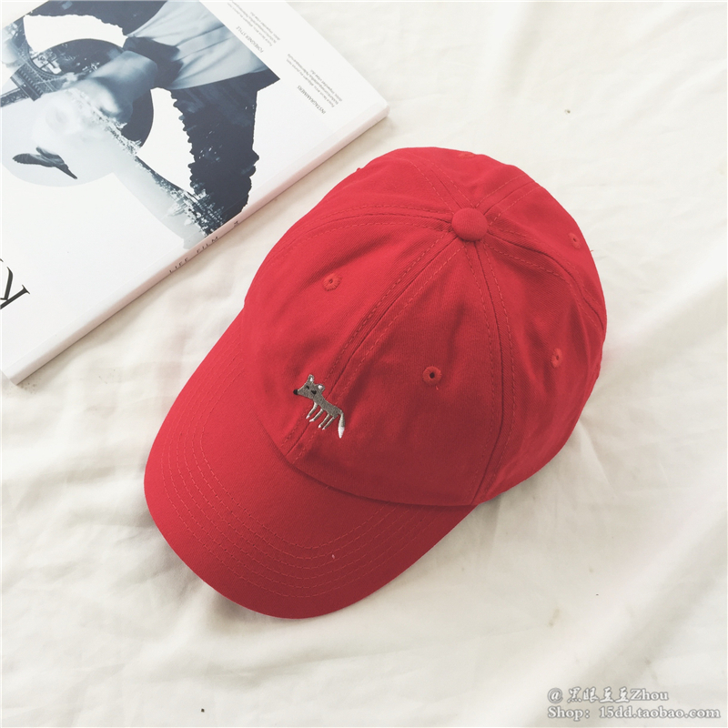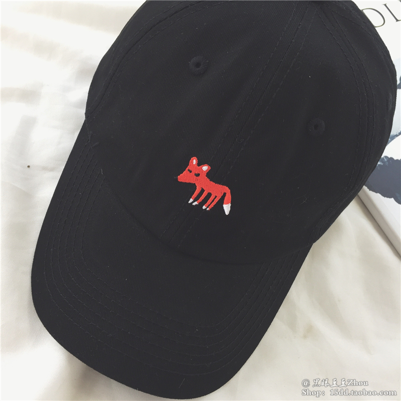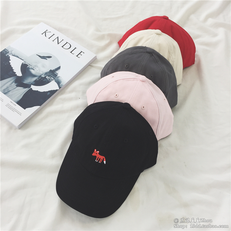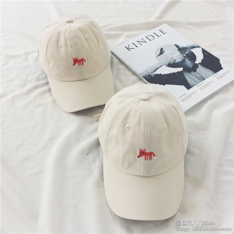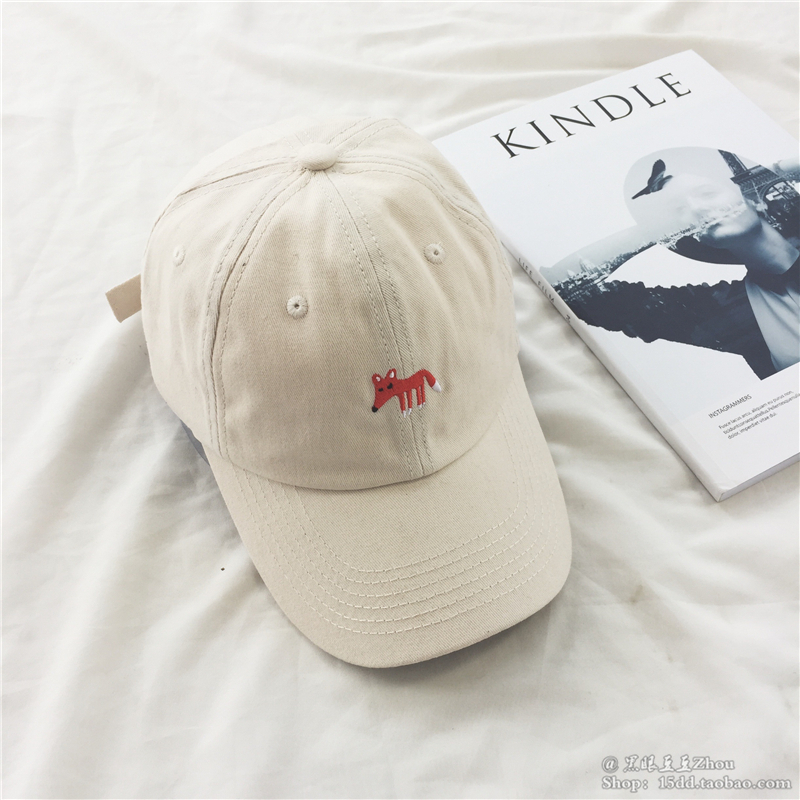 韓國休閑小狐貍刺繡復古棒球帽子男女潮夏季百搭遮陽彎檐鴨舌帽1入