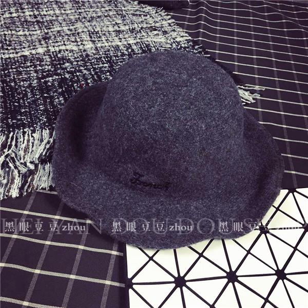 韓國字母羊毛絨針織大檐帽子盆帽英倫復古女秋冬可折疊毛線漁夫帽1入
