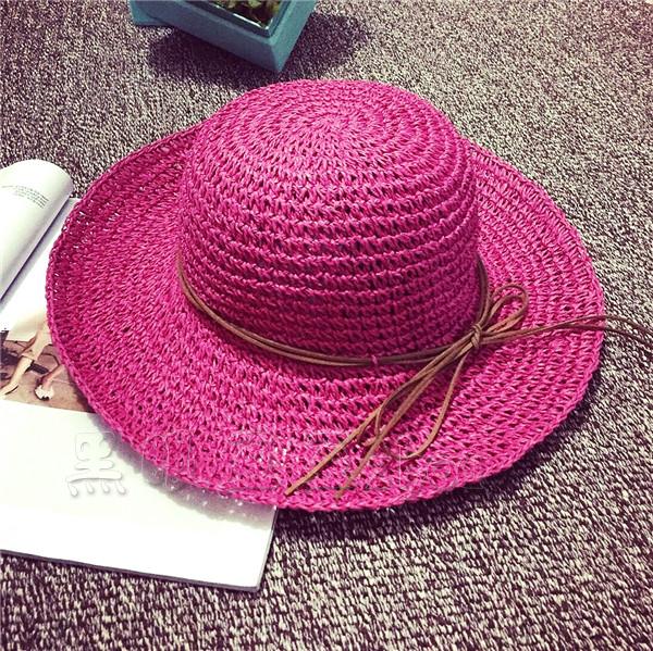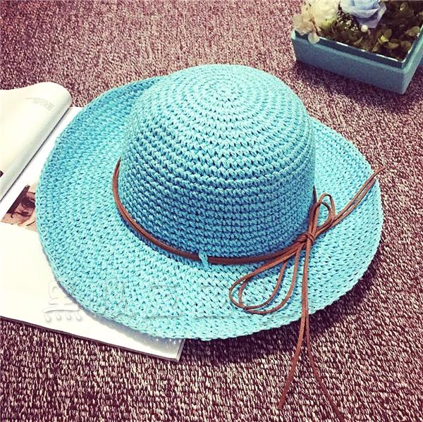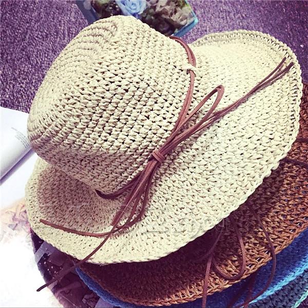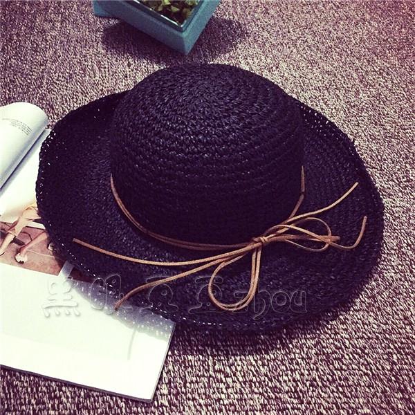 韓國復古森女系全手工編織蝴蝶結大檐遮陽草帽沙灘帽子女夏天出游1入