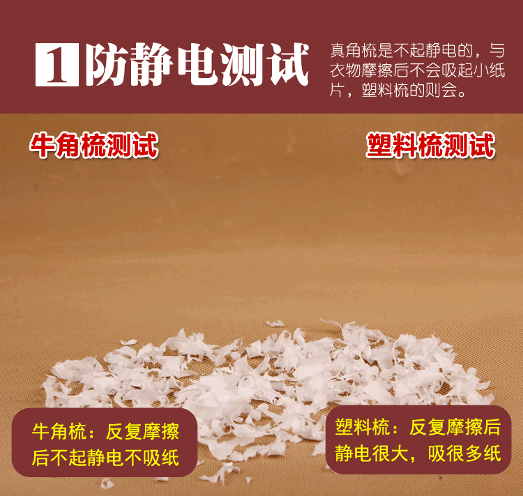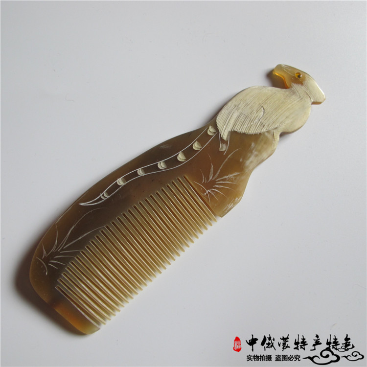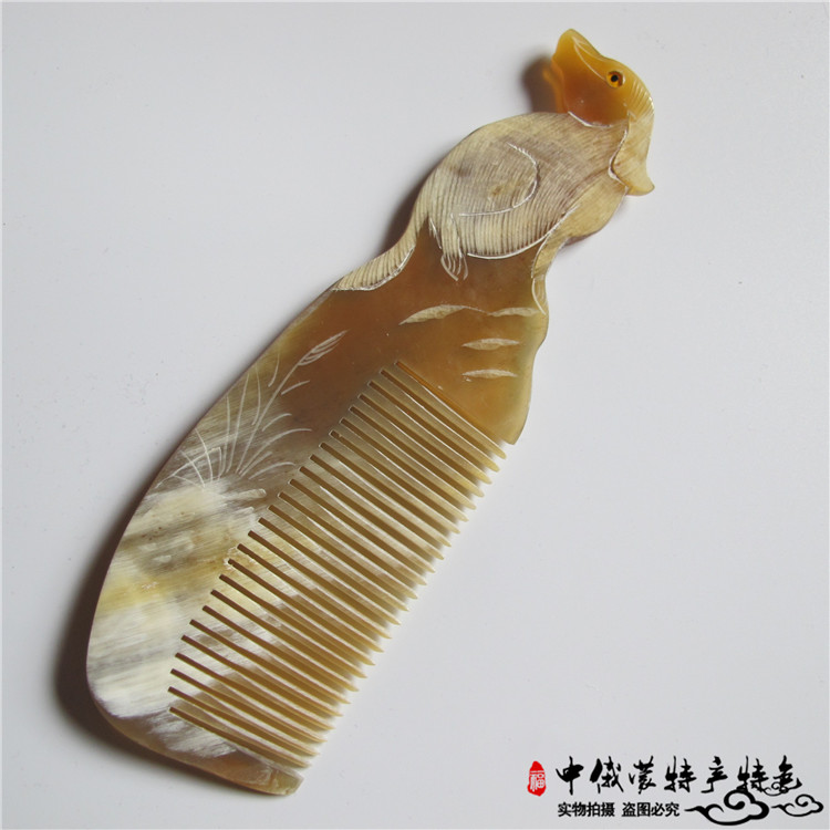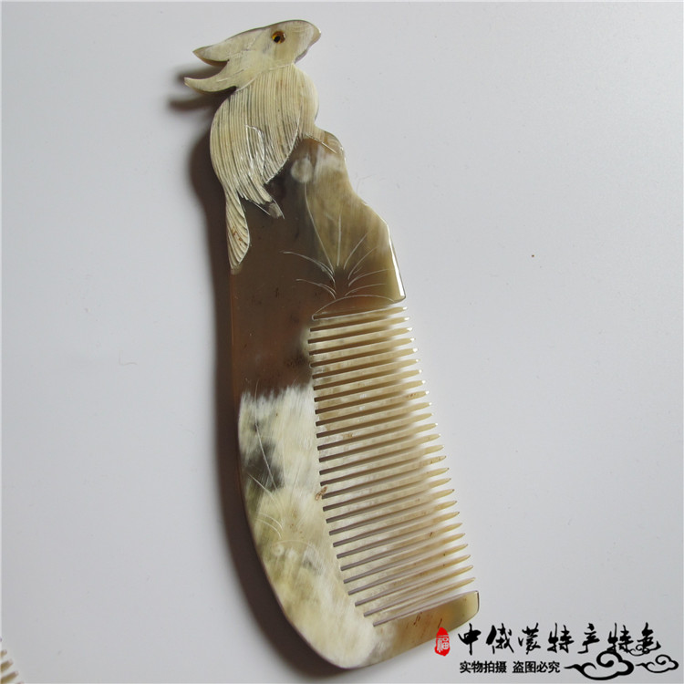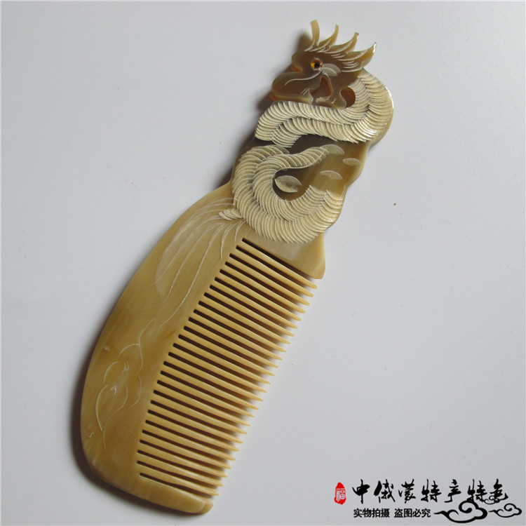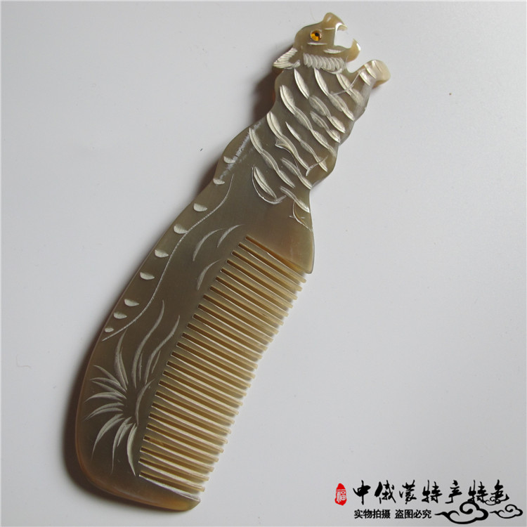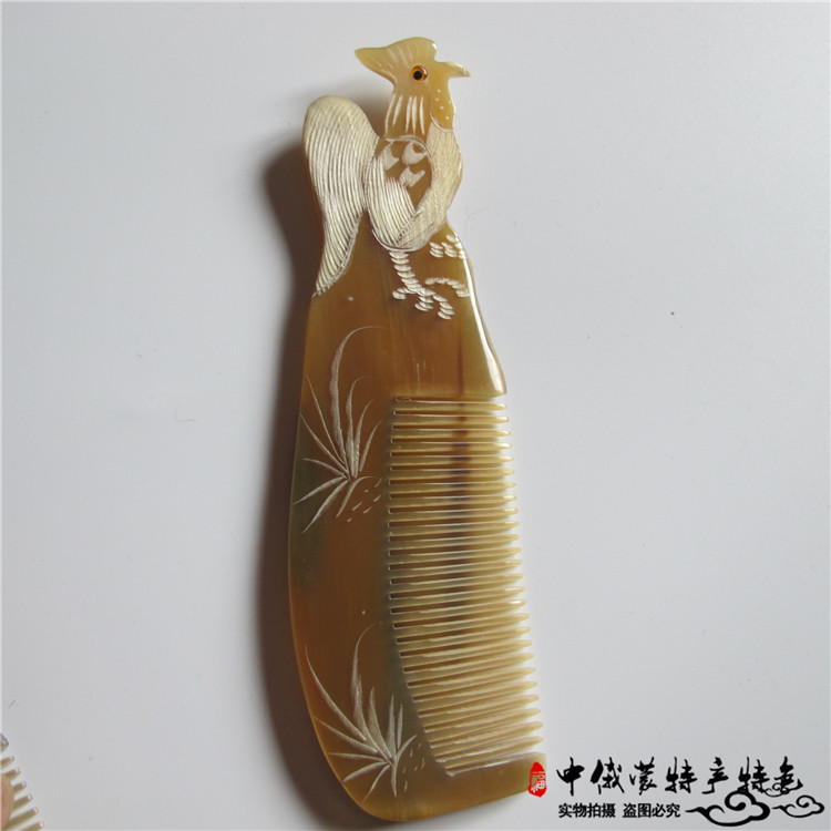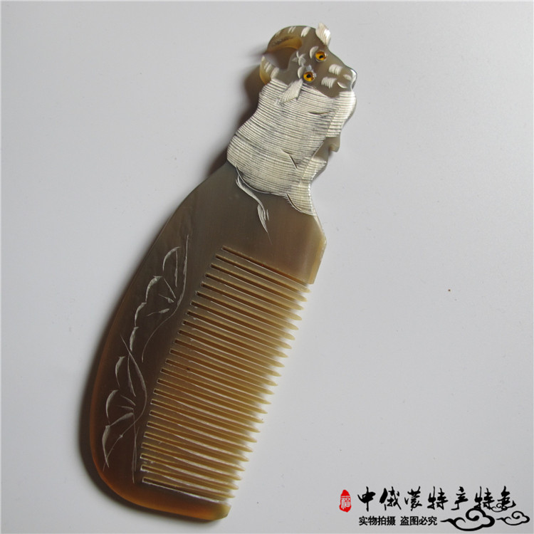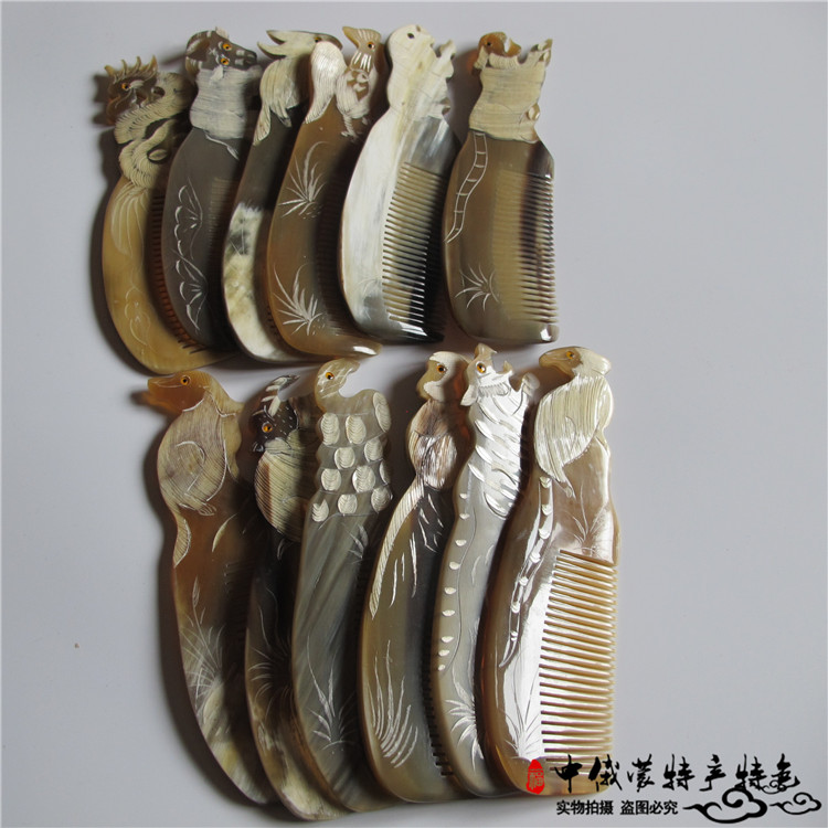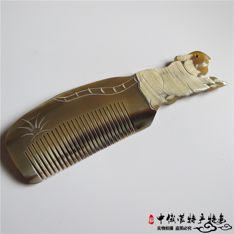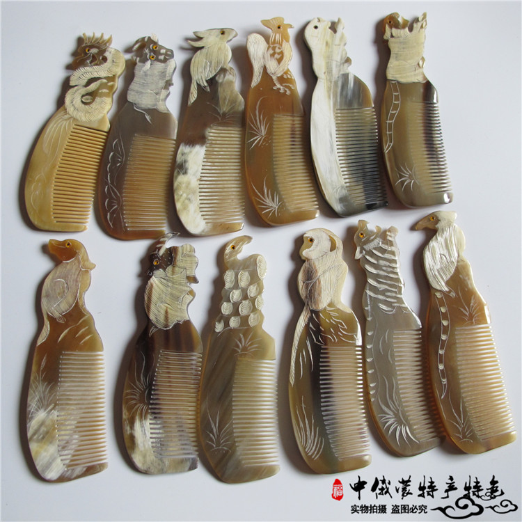 12生肖牛角梳子內蒙古手工藝品純天然黑水牛角梳子保健梳子防脫發1入