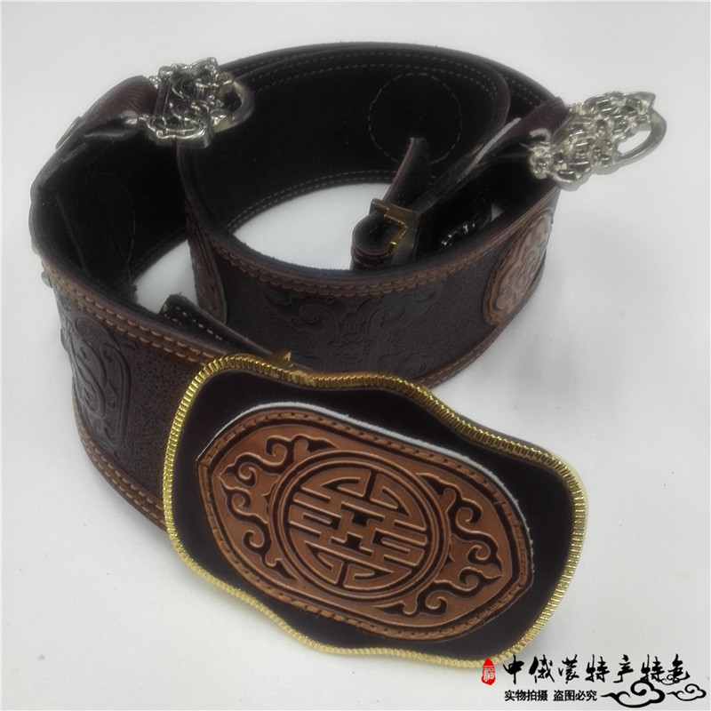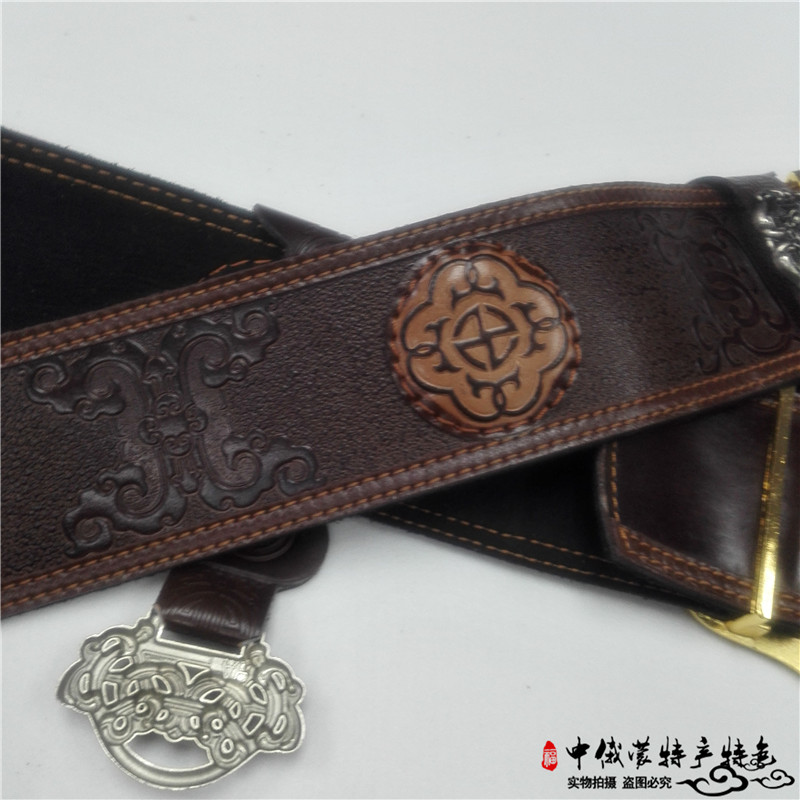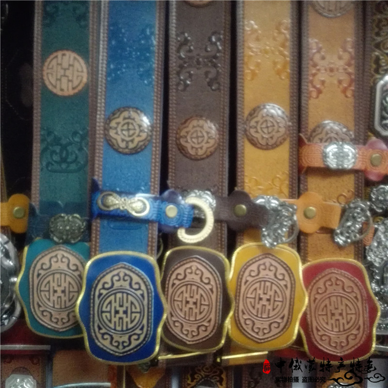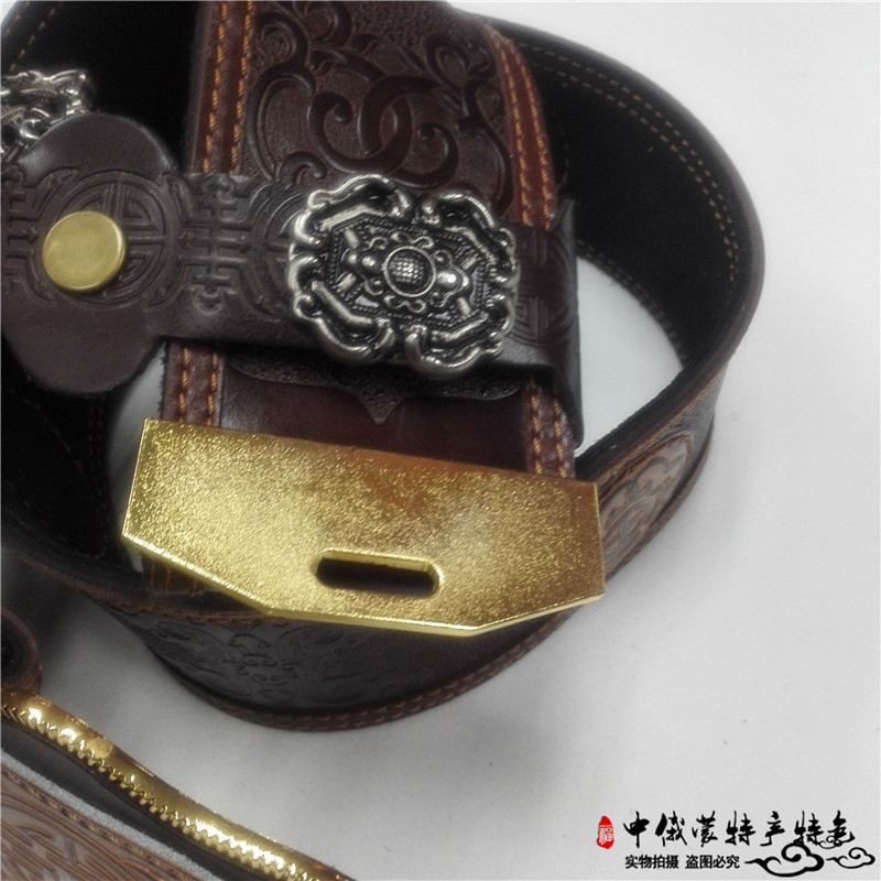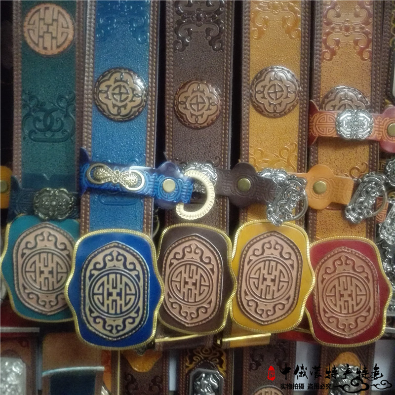 蒙古腰帶真皮男士蒙古袍腰帶配飾配件民族風旗袍腰帶演出腰帶扣1入