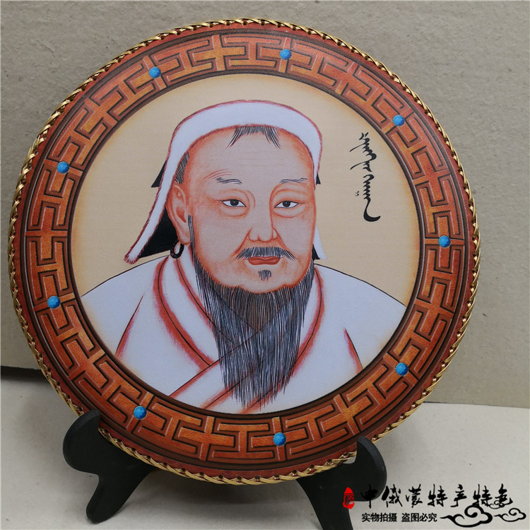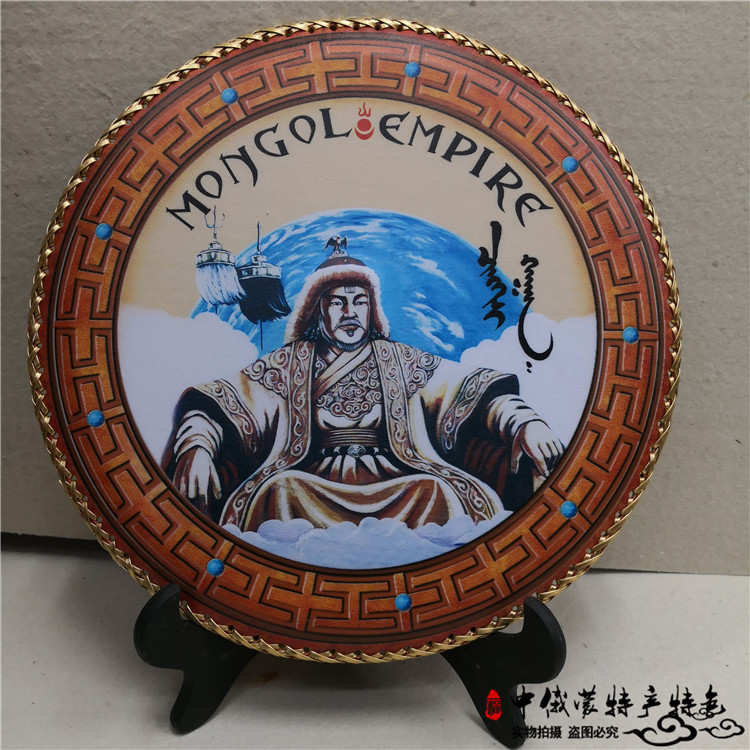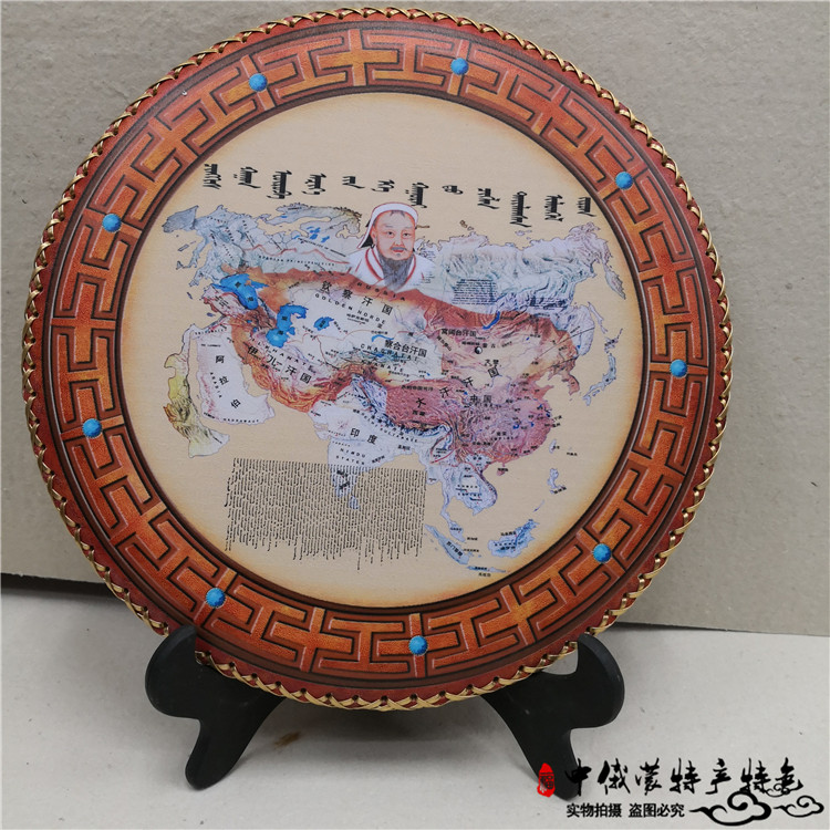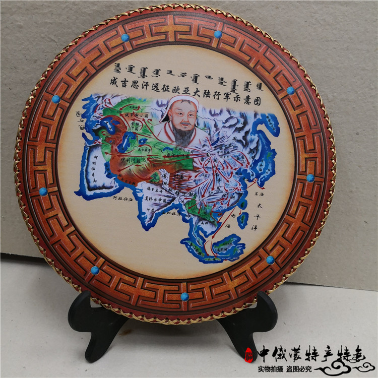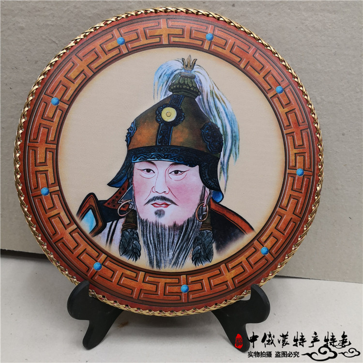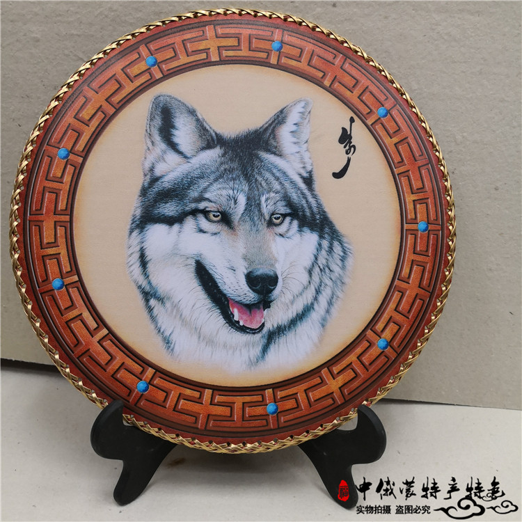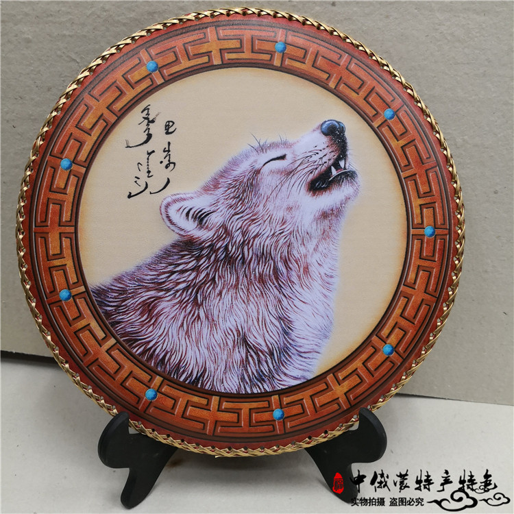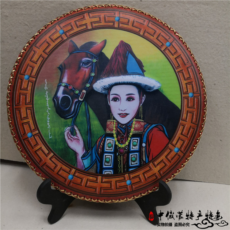 內蒙古皮畫蒙古特色工藝品裝飾畫圓盤擺臺畫家居飾品擺件送禮紀念1入