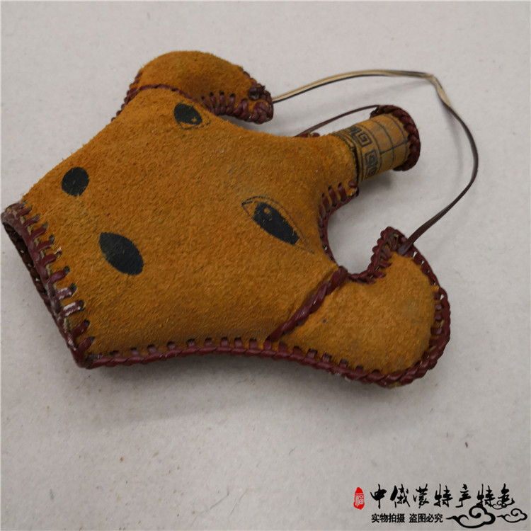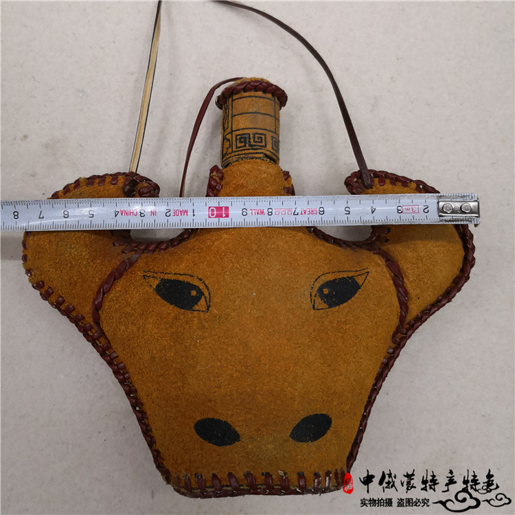 內蒙古特色牛角造型馬奶酒空壺200克容量 純皮工藝品擺件裝飾品1入