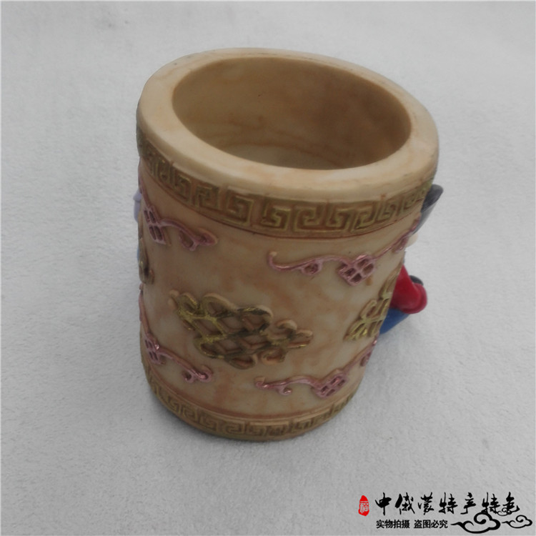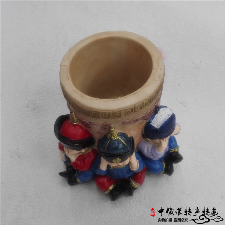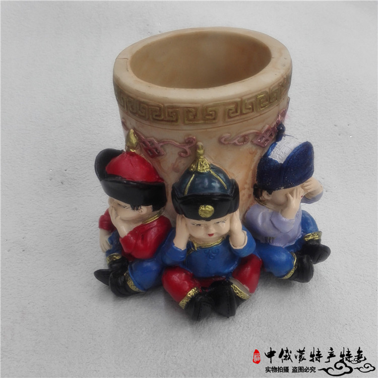 三不娃娃筆筒樹脂擺件內蒙古工藝品蒙古禮品樹脂民族特色筆筒紀念1入