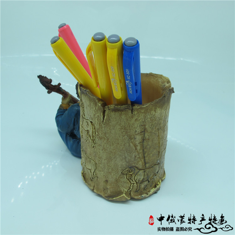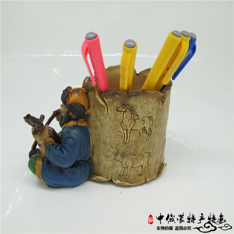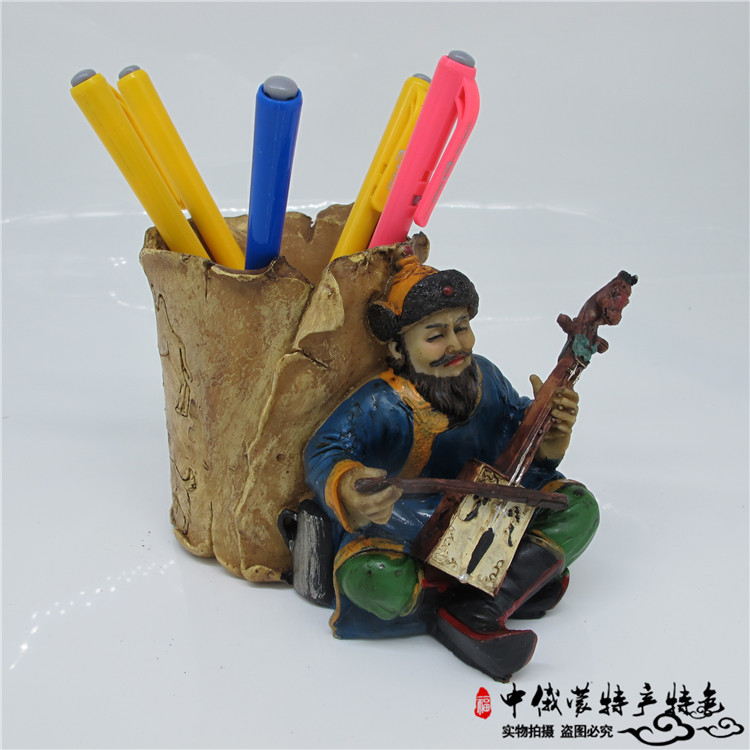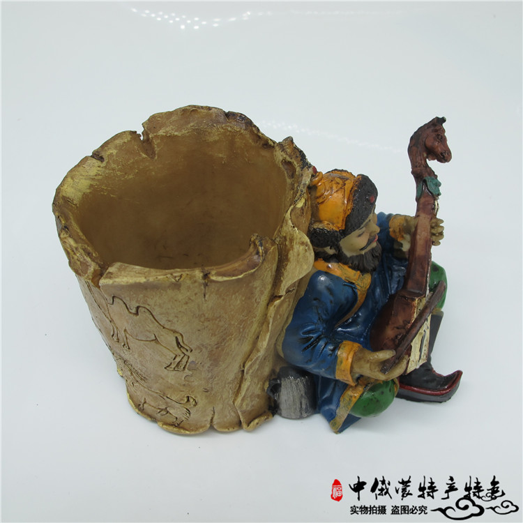 內蒙手工藝品裝飾品蒙古特色筆筒樹脂老人拉琴筆筒創意禮物擺件1入