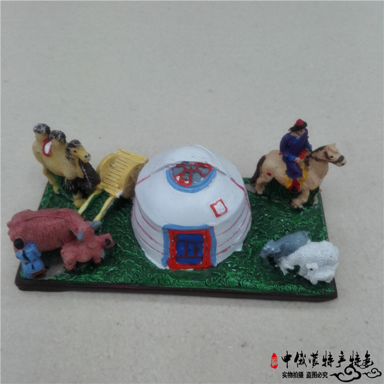 蒙古族特色工藝品擺件蒙古包草原五畜樹脂工藝品裝飾品禮品禮物1入