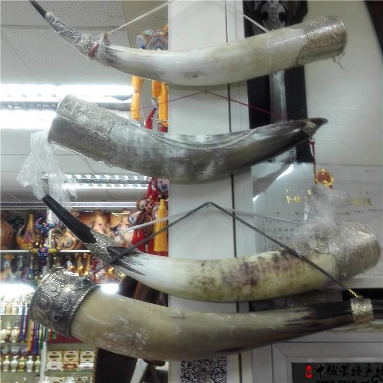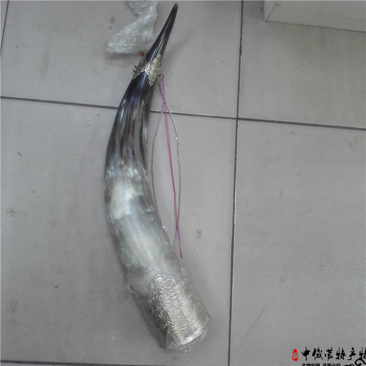 蒙古工藝品牛角創意擺件酒蒙古包蒙餐店裝飾品藝術結盟杯包銅裝飾1入