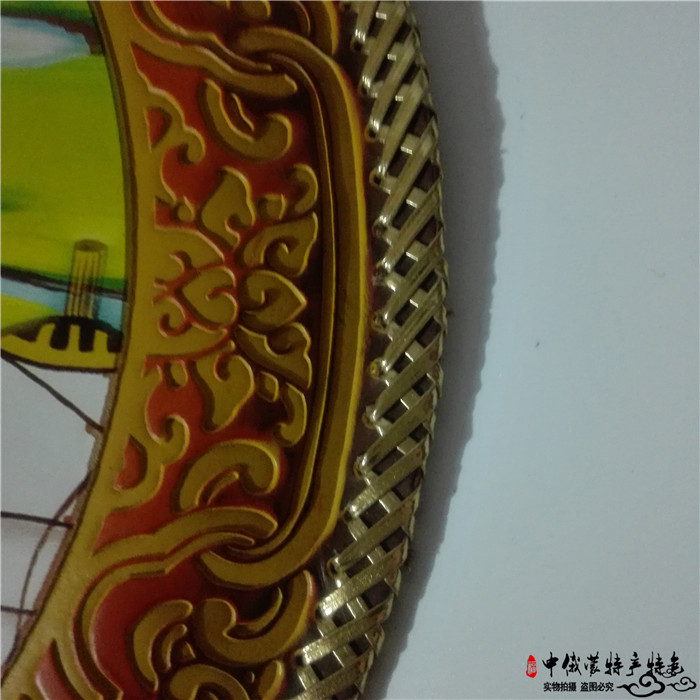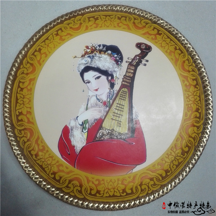 王昭君蒙古皮畫圓盤皮畫擺件手工藝品 蒙古族特色簡約現代彩色畫1入