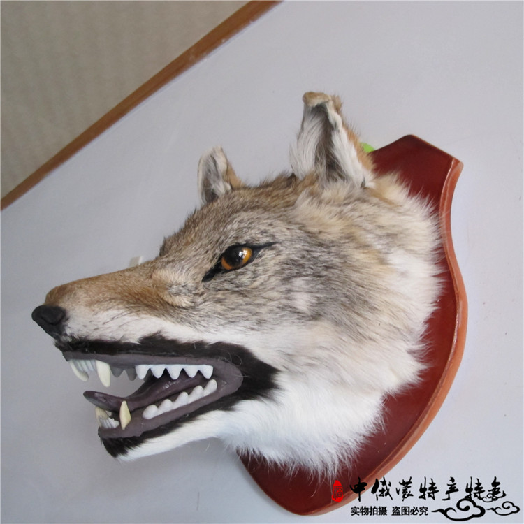 蒙古工藝品擺件動物壁掛家居裝飾壁飾飾件標本仿真狼頭模型蒙餐1入