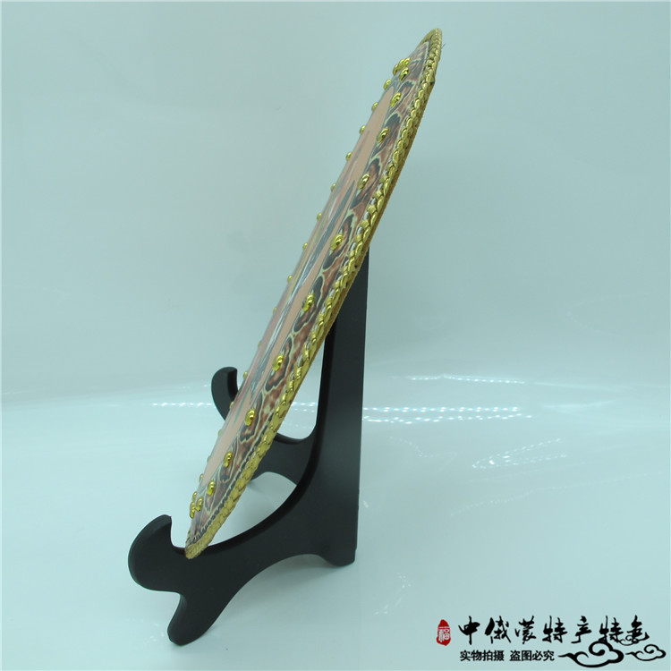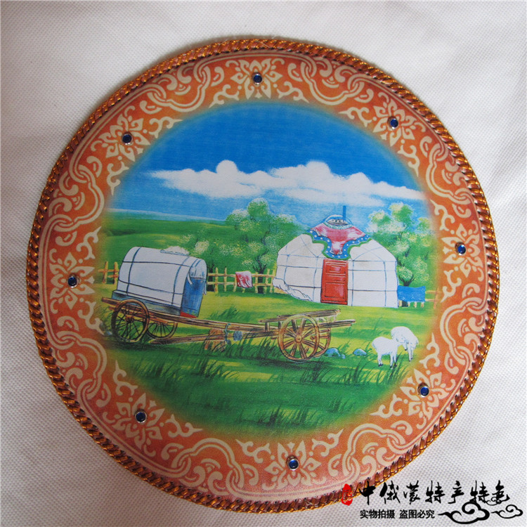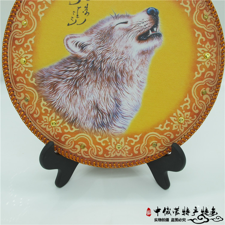 蒙古皮畫圓盤畫擺件彩色純手工民間藝術皮畫立體多款蒙古風情皮畫1入