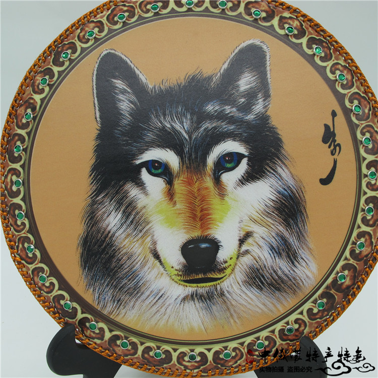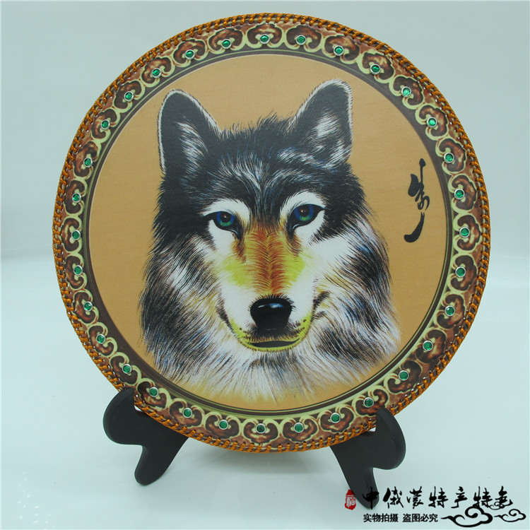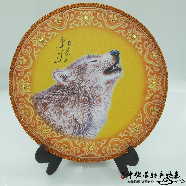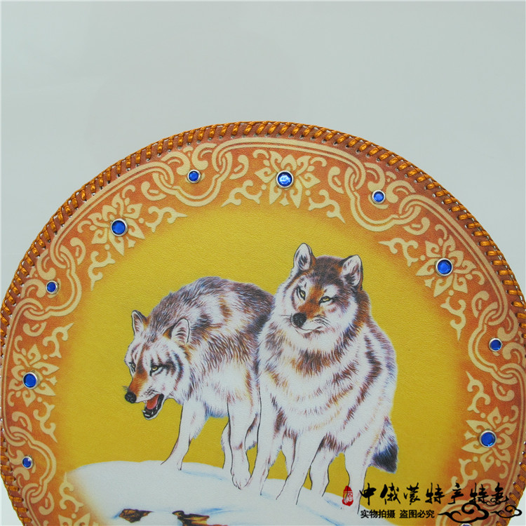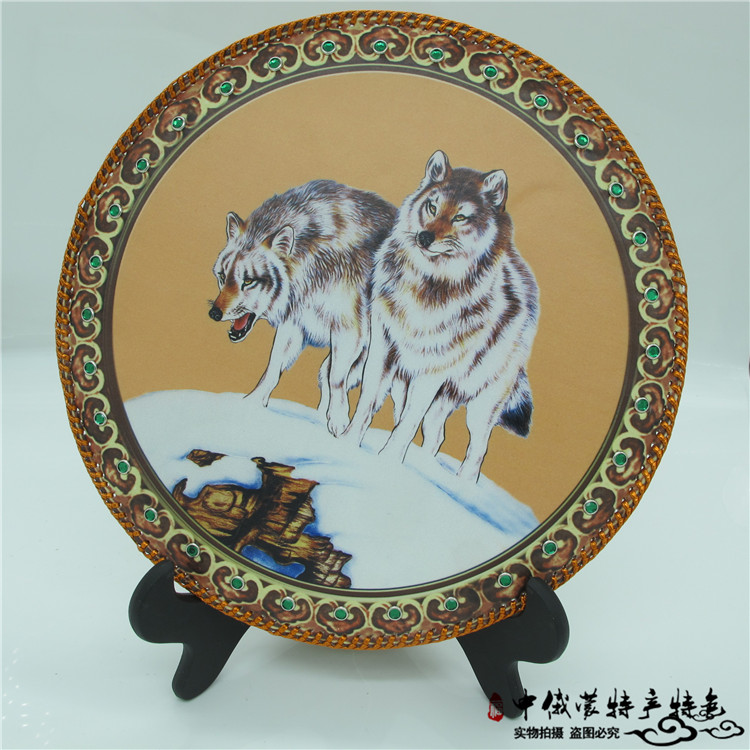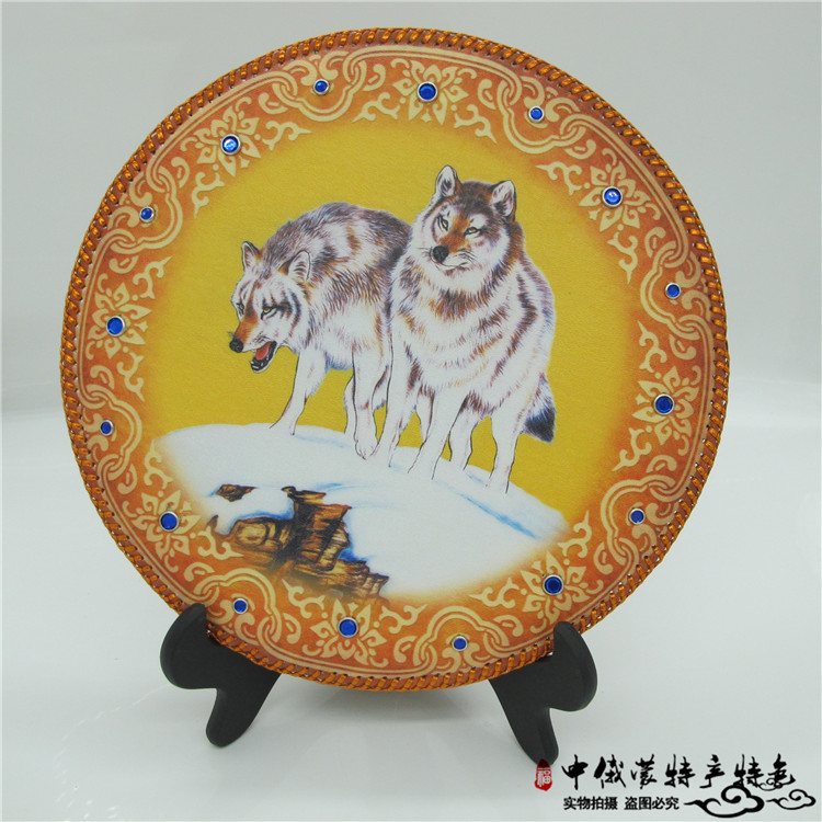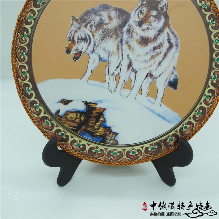 內蒙古手工皮畫特色工藝品圓畫支架畫辦公擺設紀念禮物裝飾品圓盤1入