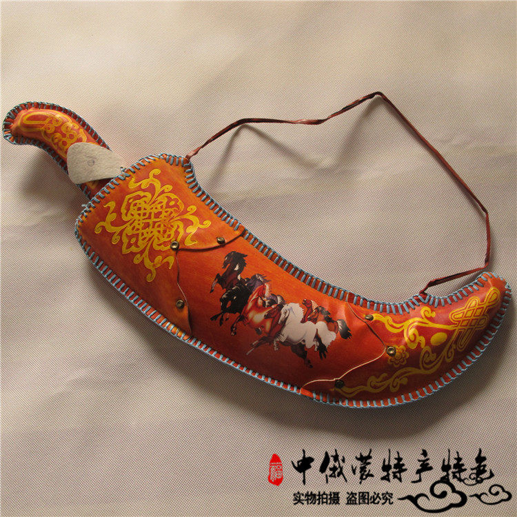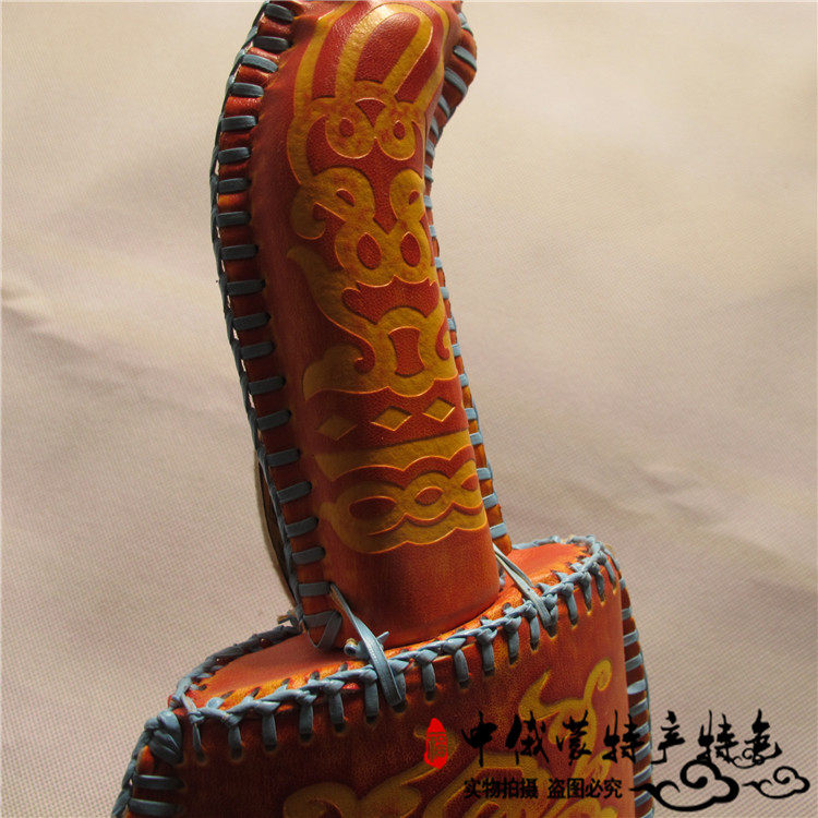 內蒙特產蒙古刀造型皮囊奶酒壺八駿馬成吉思汗王昭君狼頭多種圖案1入