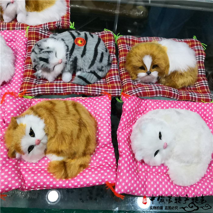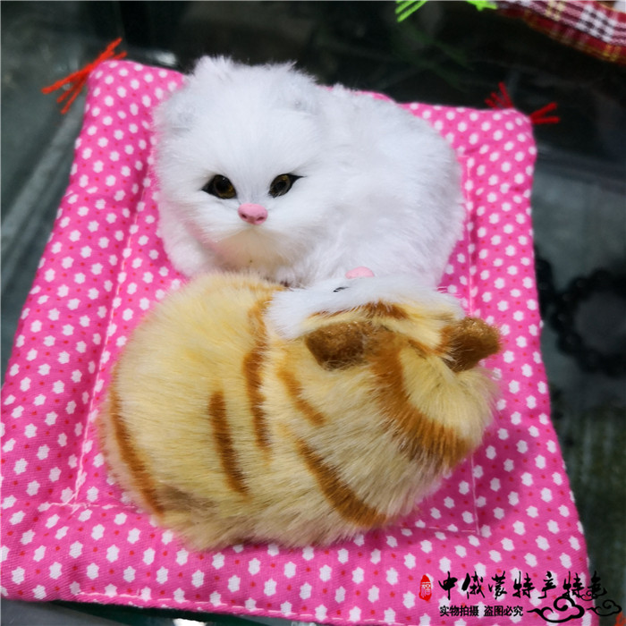 仿真貓咪小睡貓/布墊貓咪少女房間可愛擺件蒙古特色皮毛動物擺件1入