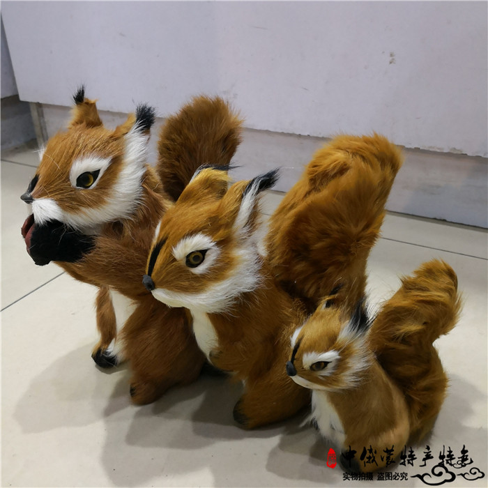 仿真小松鼠模型擺件真皮毛絨玩具松鼠標本仿真動物工藝品桌面櫥窗1入