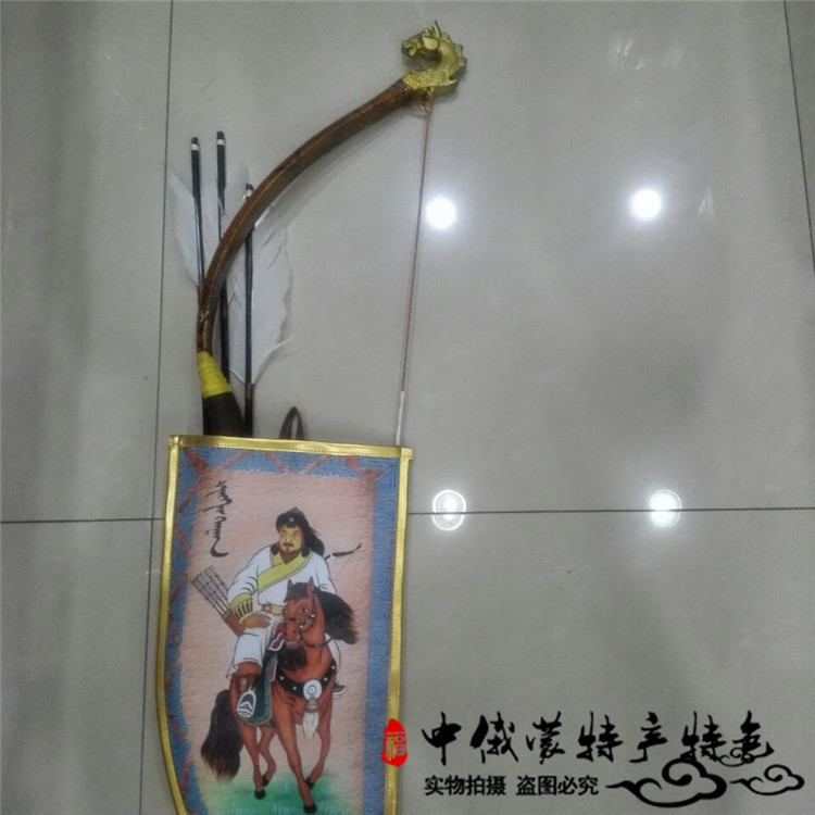 兒童弓箭蒙古弓箭手工工藝品雙馬頭玩具擺件馬頭弓蒙古包裝飾品1入