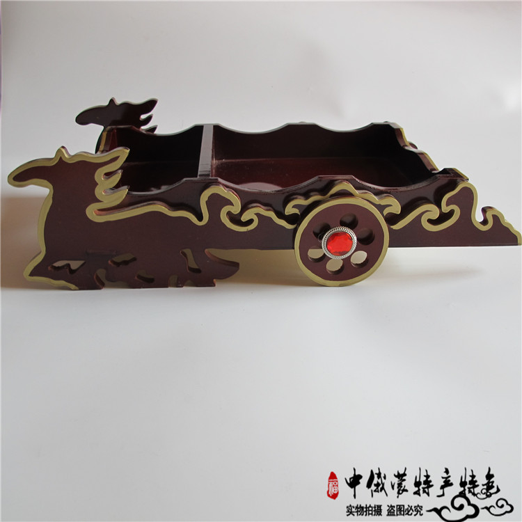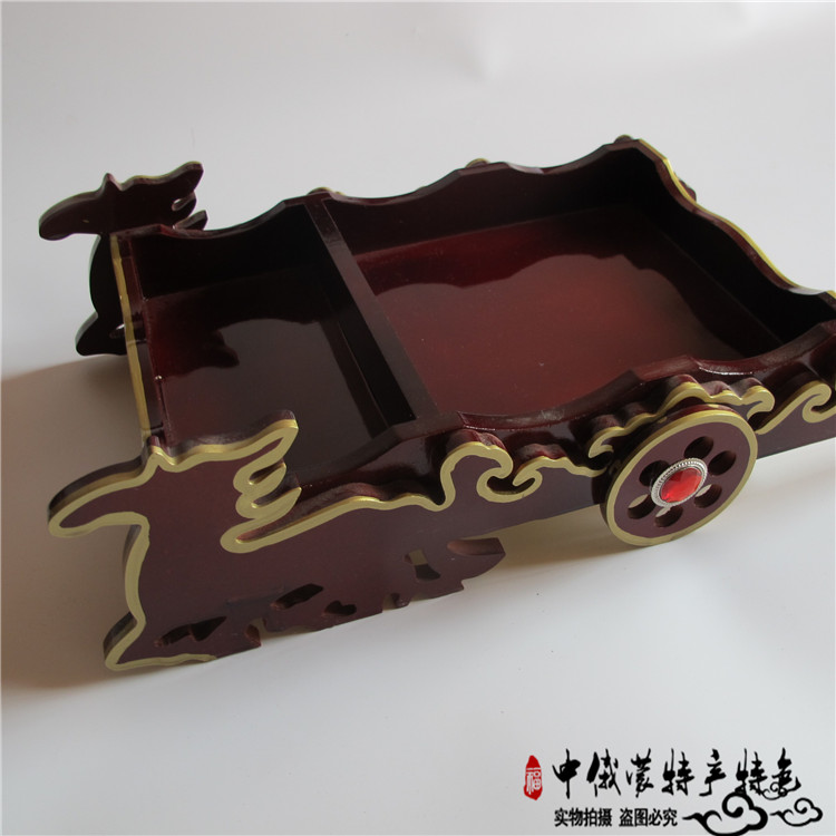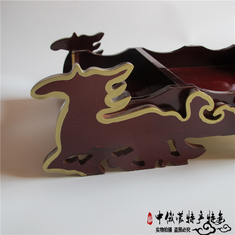 蒙古餐盤餐具蒙餐飯店特色雙馬拉車勒勒車木盤手把肉托盤奶食品木1入