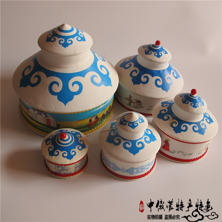 蒙古包首飾盒仿皮制內蒙古工藝品旅游紀念品收納盒裝飾品擺件特色1入