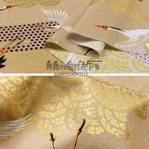 半米價 日本進口純棉布料 仙鶴印花布料 適合漢服浴衣包桌布 預訂1入