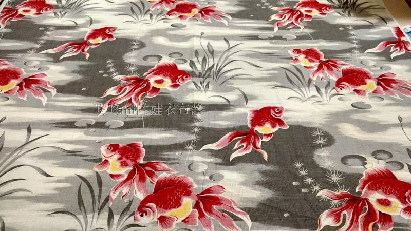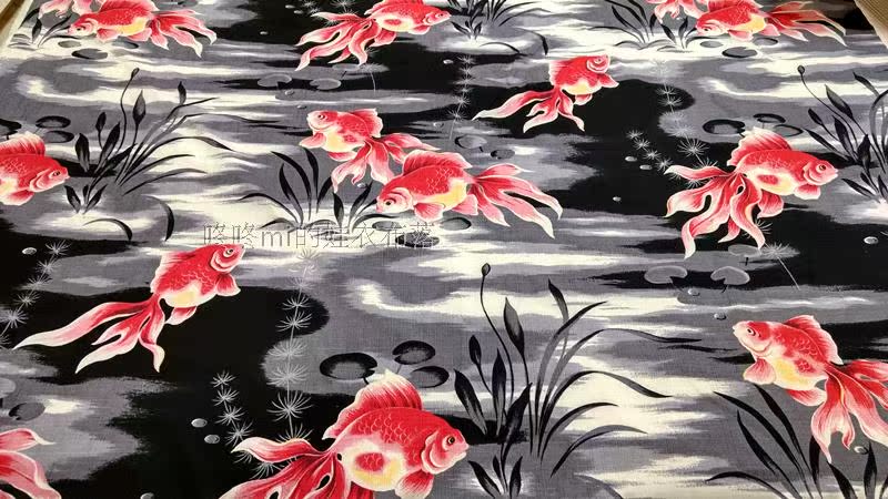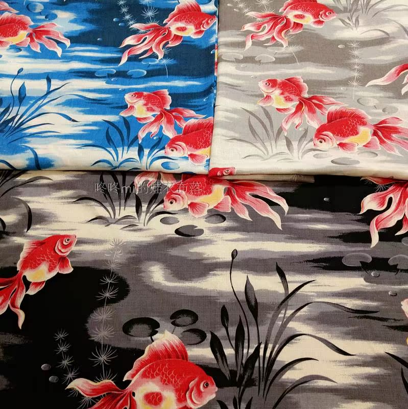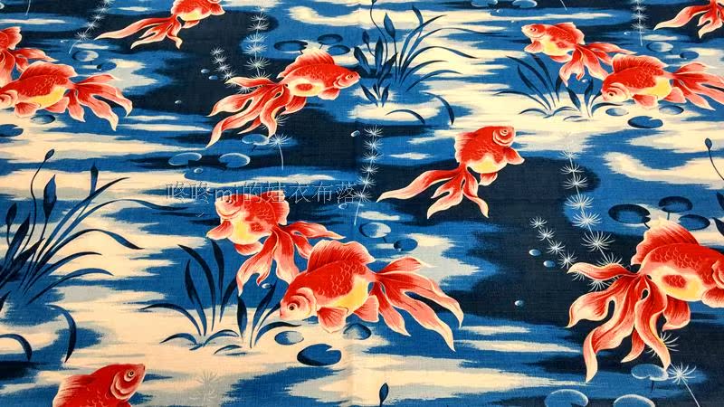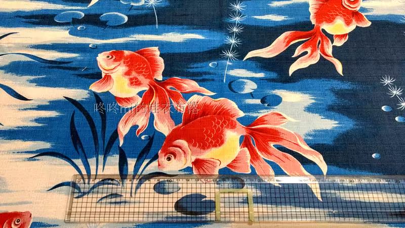 1/4米 日本進口金魚印花布料 背景桌布玄關隔掛布DIY手工純棉現貨1入