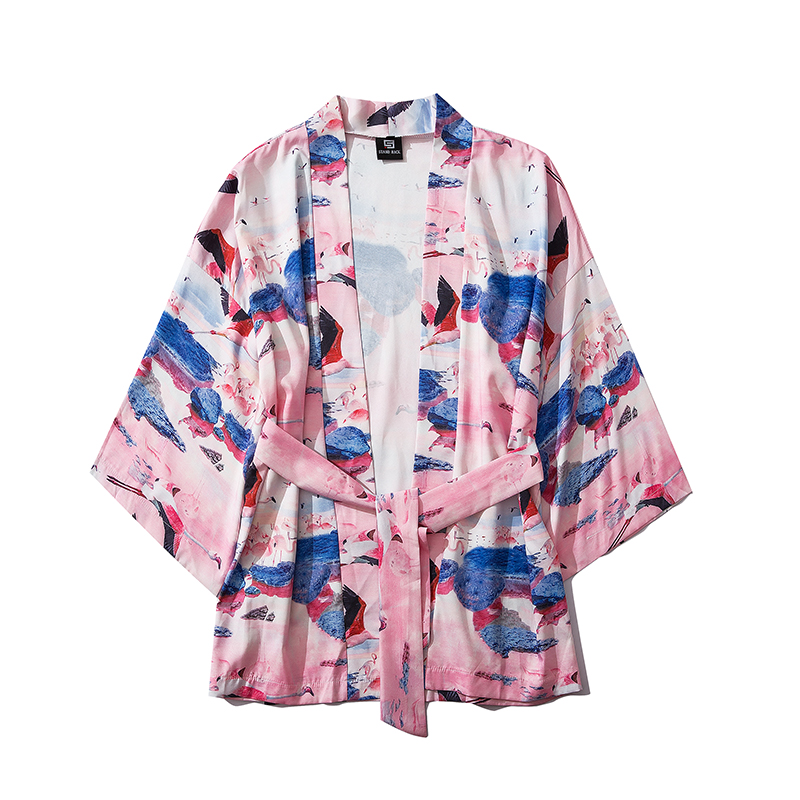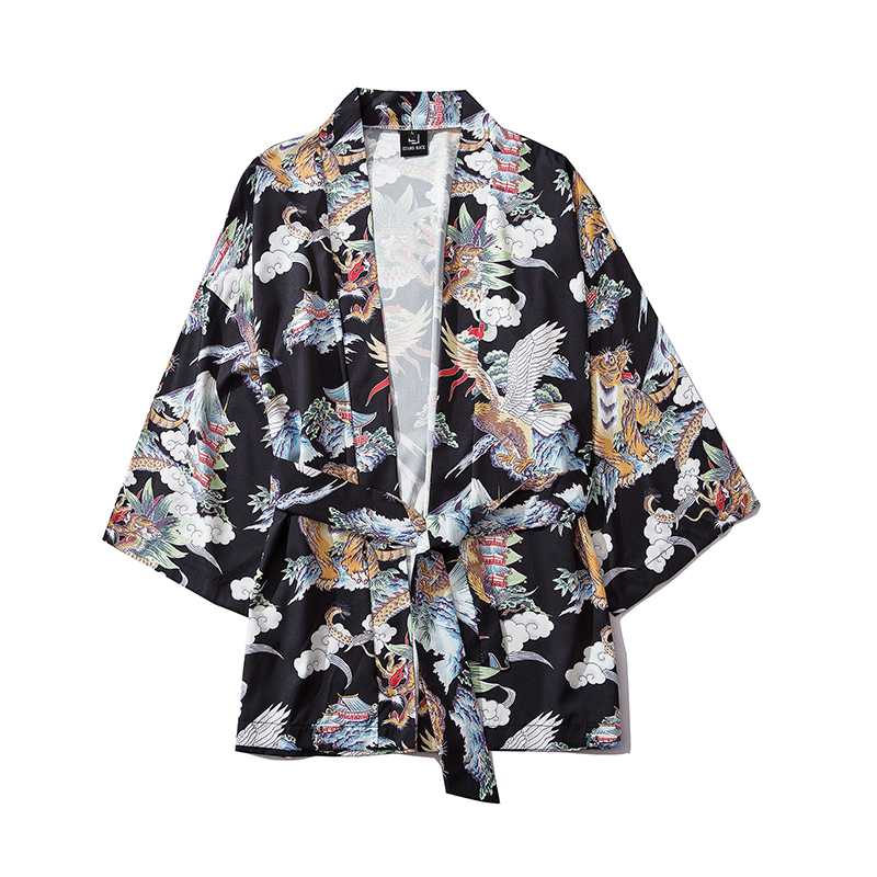 中國風浮世繪七分袖和服男女款七分袖開衫龍袍休閑道袍上衣外套1入