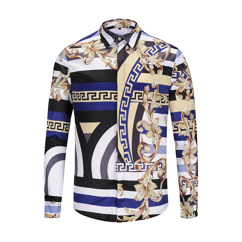 2017秋冬季新款歐美男士3D長袖襯衫印花個性創意休閑款式1入