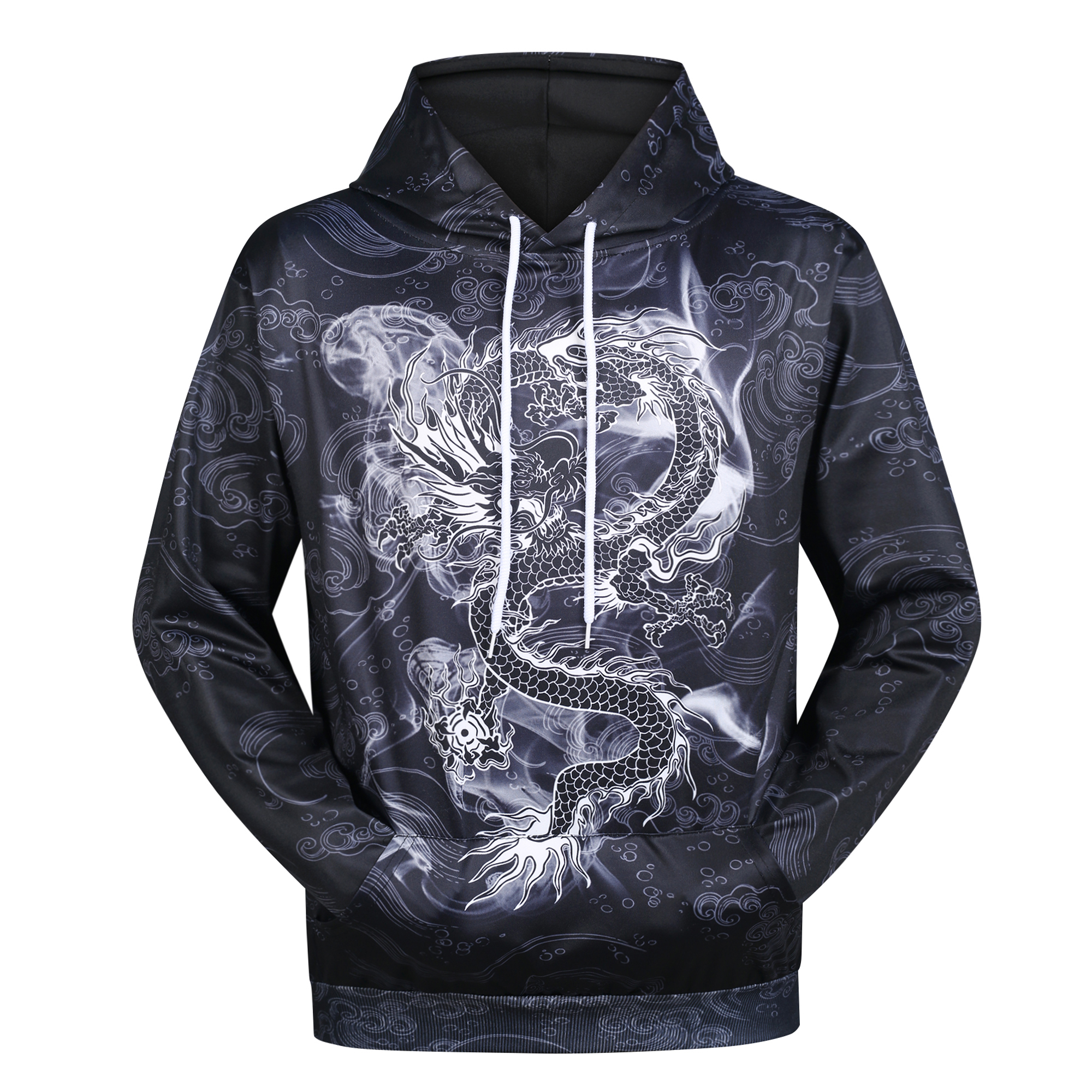 2019秋冬季新款男女款長袖套頭連帽衛衣印花浮世繪龍潮流寬松外套1入