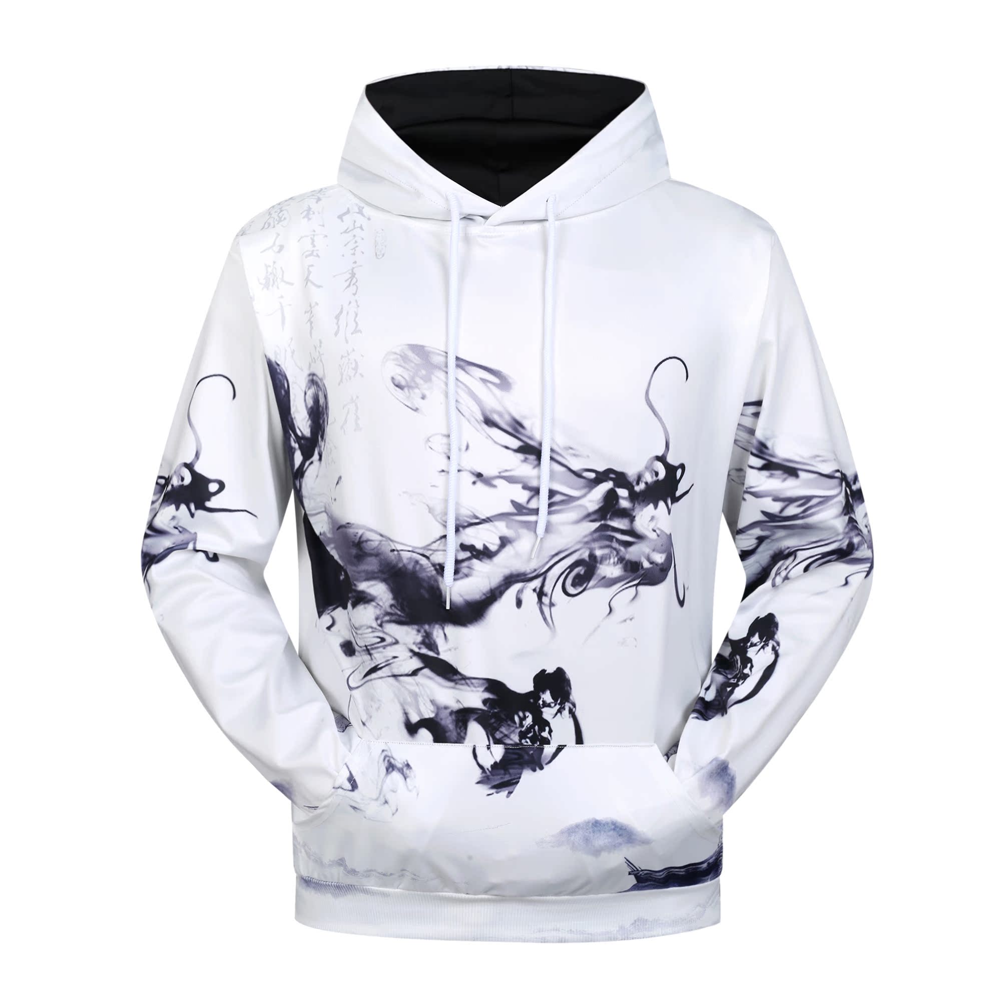 2019秋冬季新款中國風個性潑墨龍印花休閑青少年學生班服連帽衛衣1入