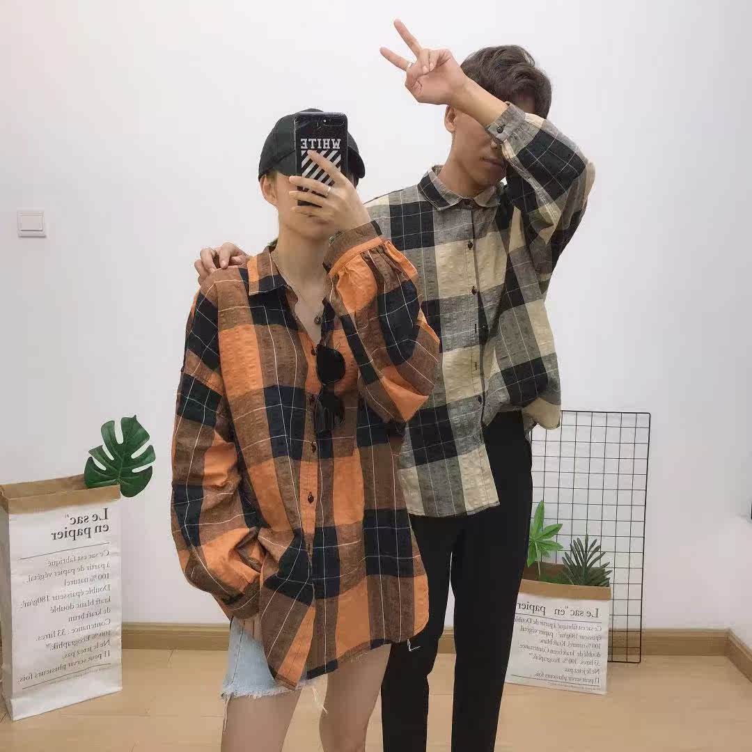 2019新款網紅的襯衫男韓版潮流帥氣夏季薄款大格子寬松長袖襯衣潮1入