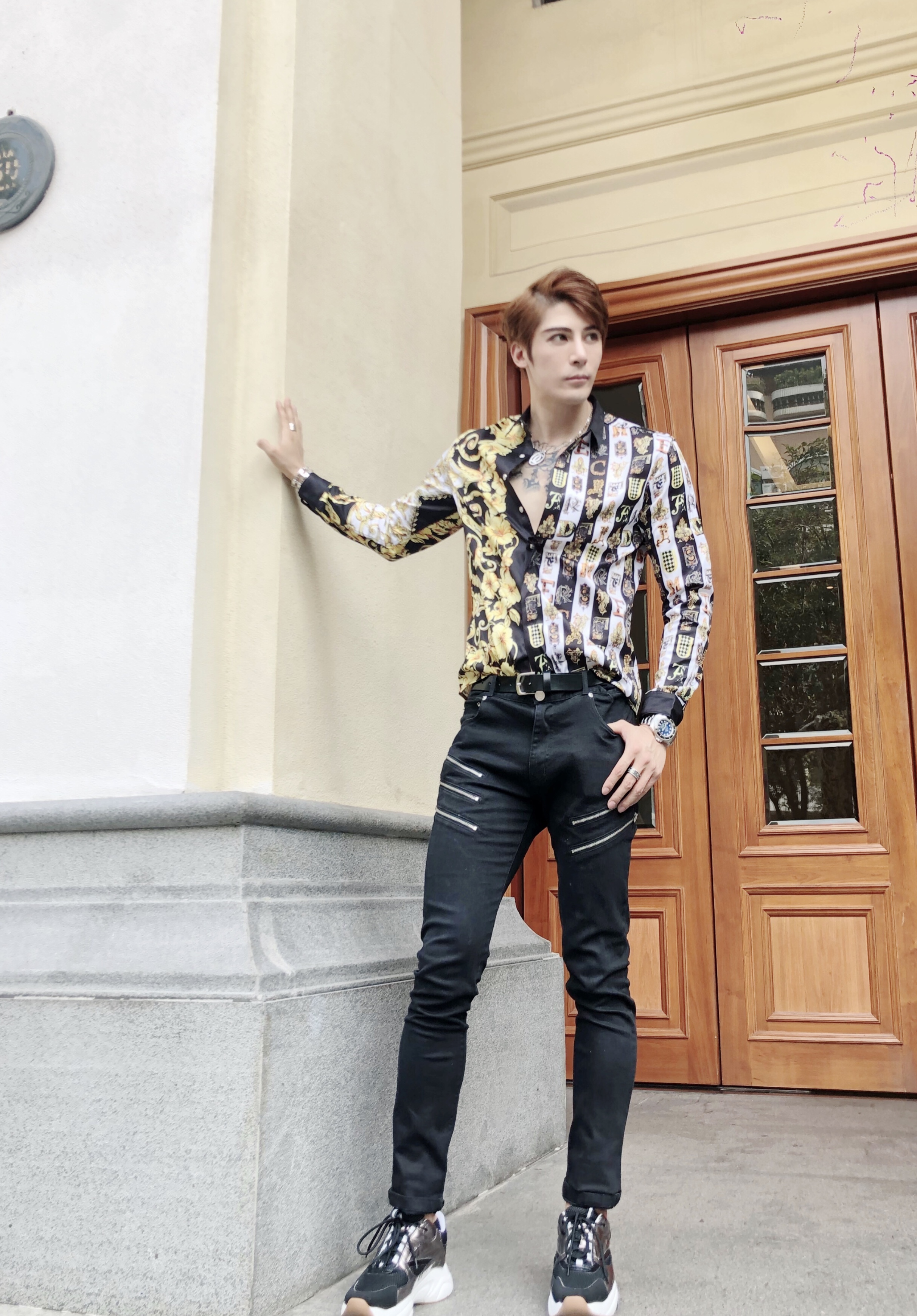 2019春夏季新款歐美長袖襯衣印花拼色花紋網絡紅人同款時尚潮流款1入