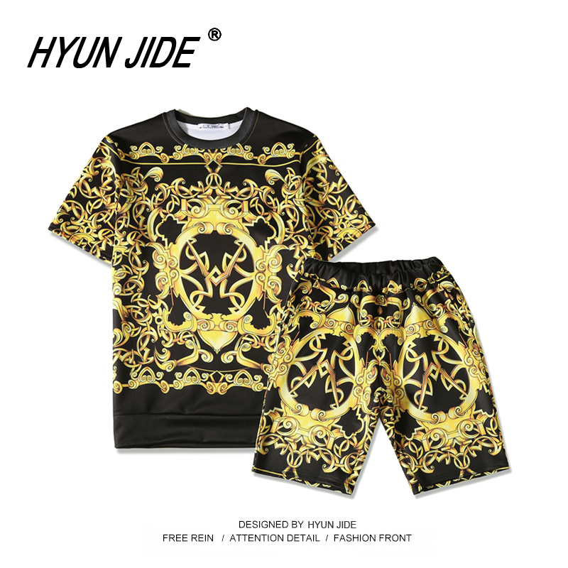 2017夏季男士3D太空短袖套裝潮流金花雕紋個性創意圖案款式1入