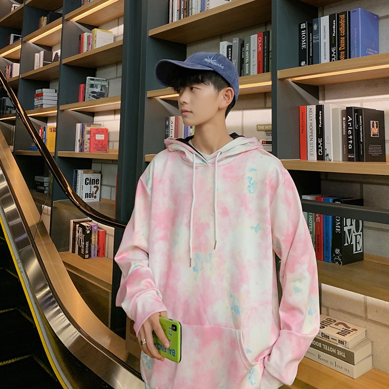 2019新款秋裝潮ins韓版寬松漸變連帽衛衣情侶裝春秋班服薄款外套1入