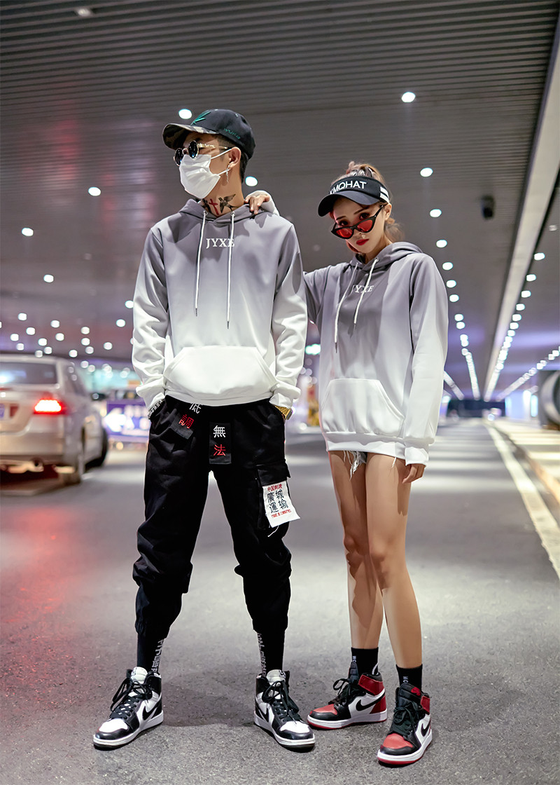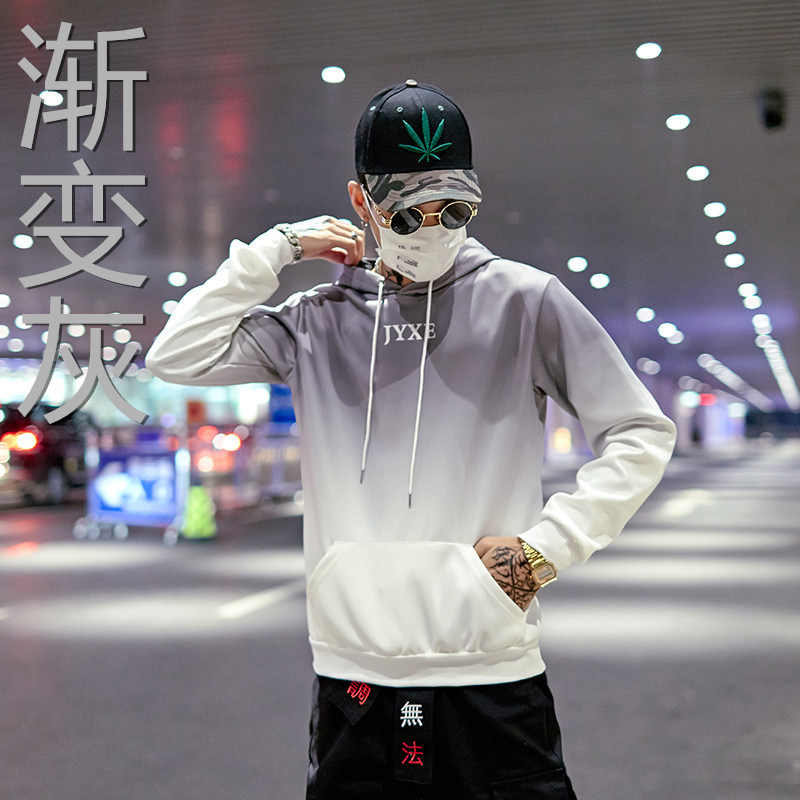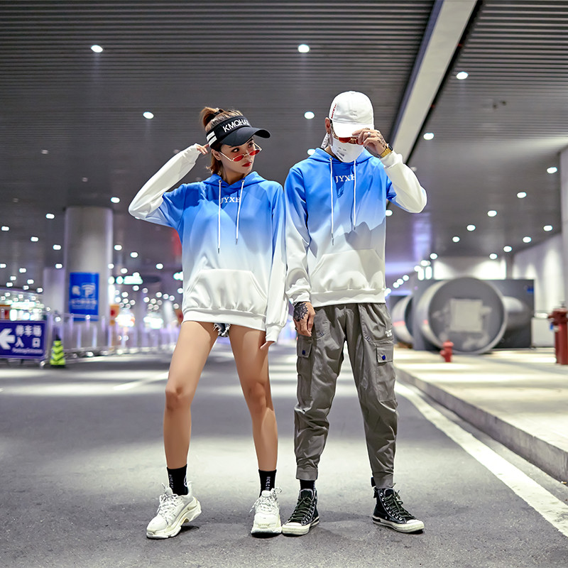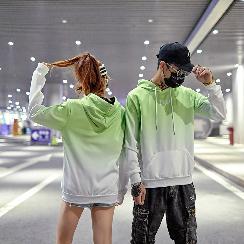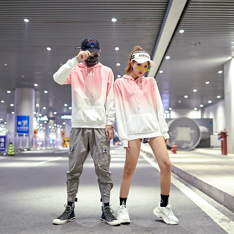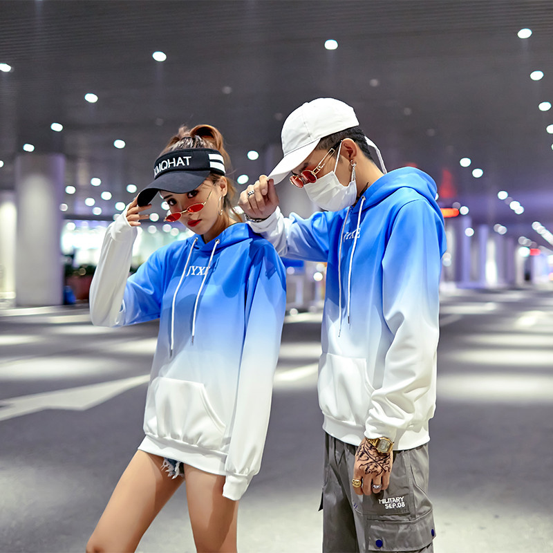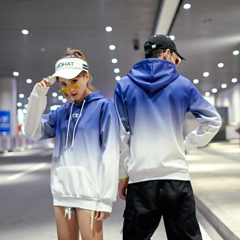 2019春秋裝漸變拼色男女款情侶套頭連帽衫寬松學生班服衛衣外套潮1入