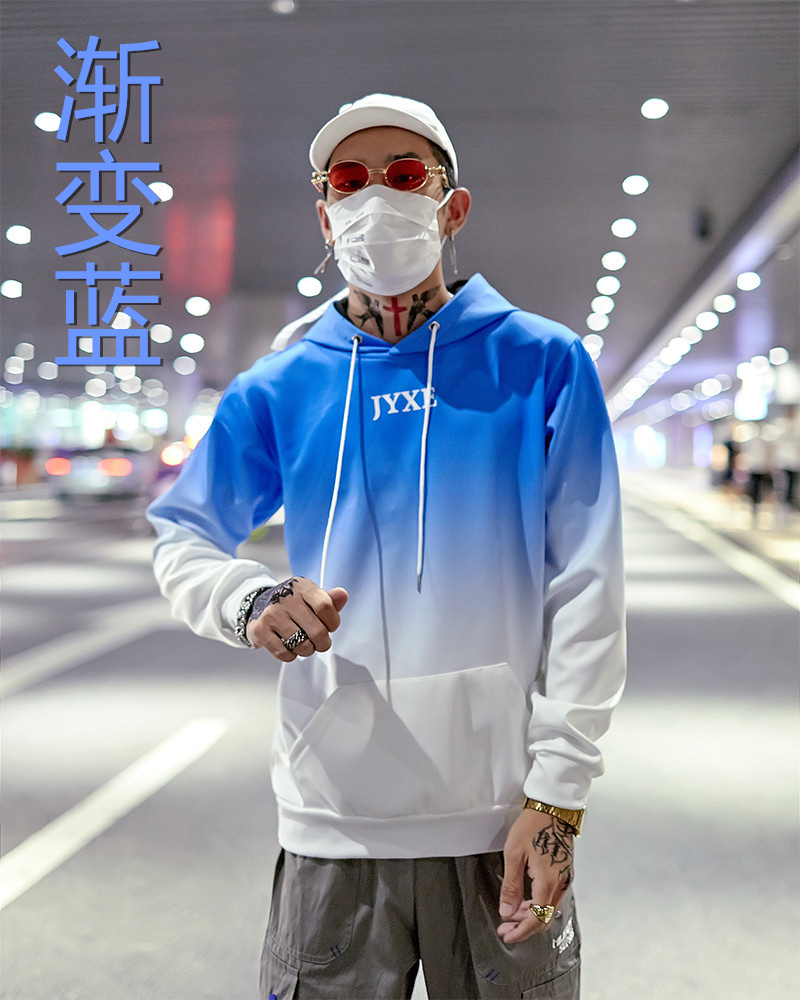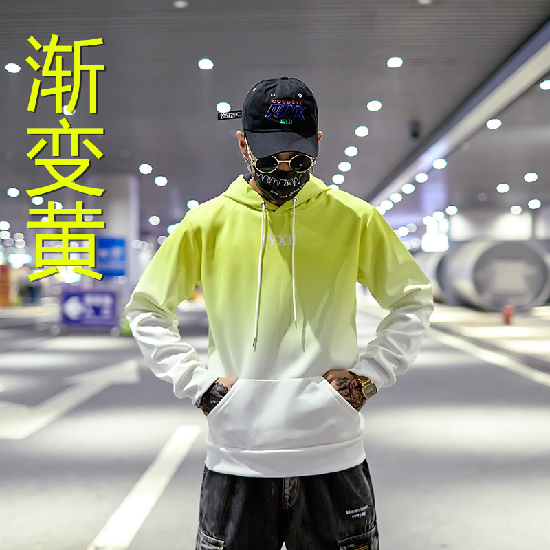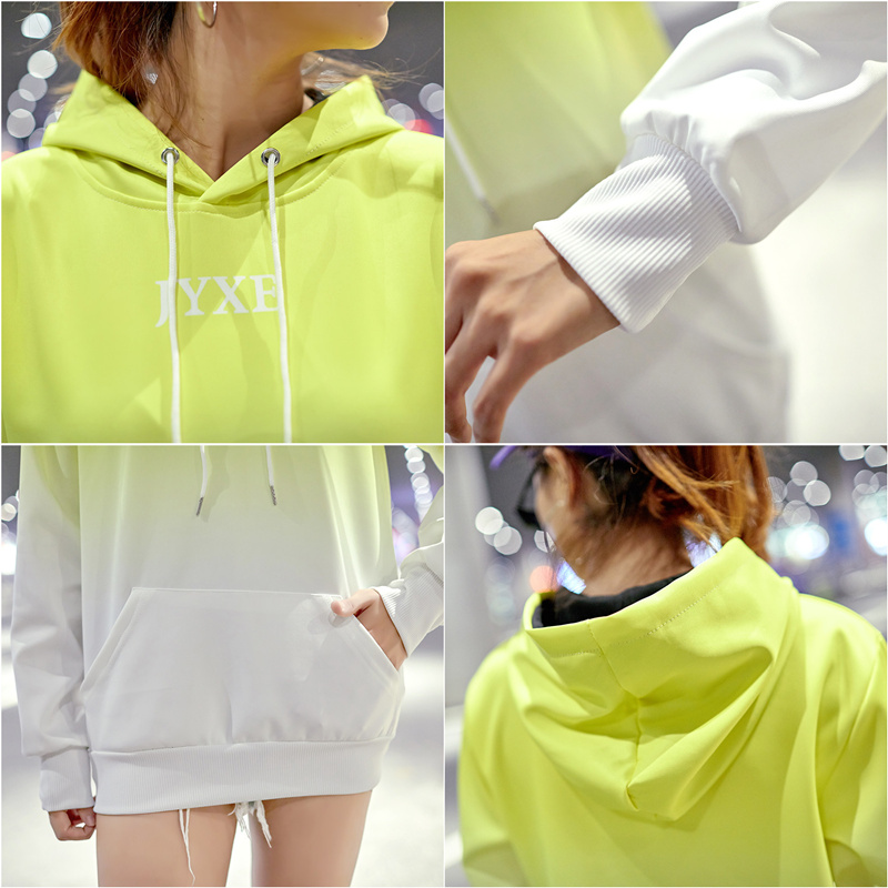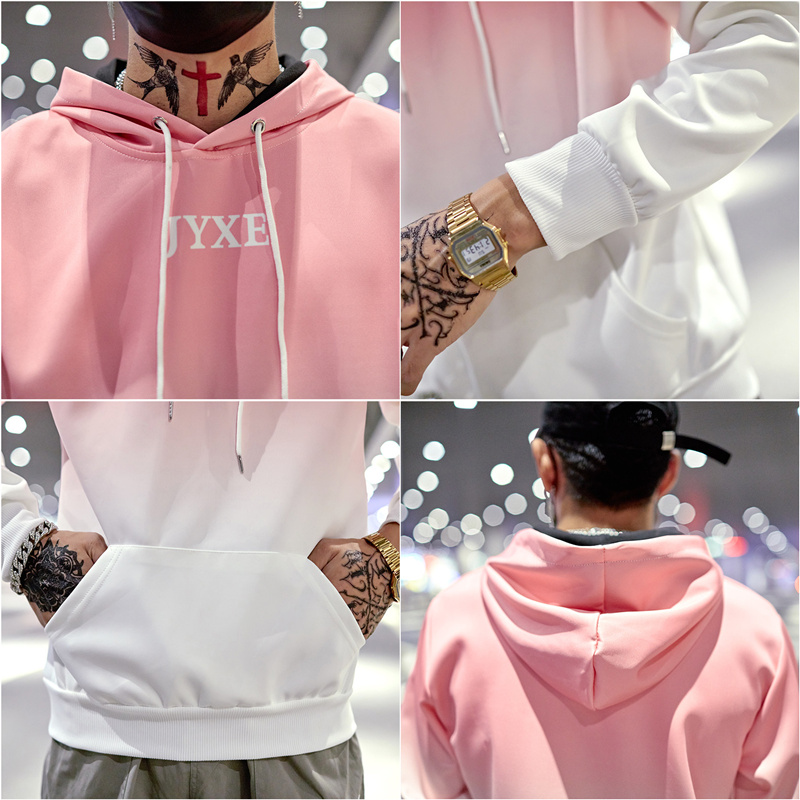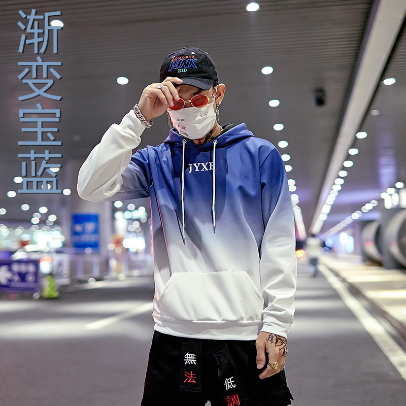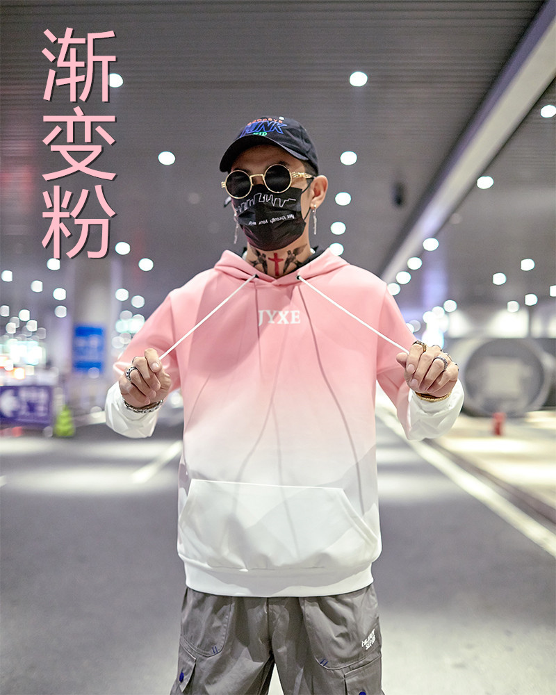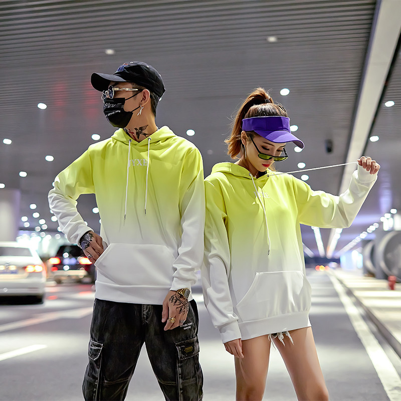 2019春秋裝漸變拼色男女款情侶套頭連帽衫寬松學生班服衛衣外套潮1入