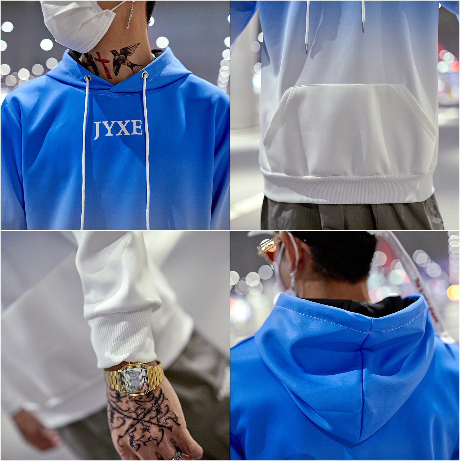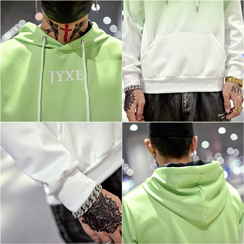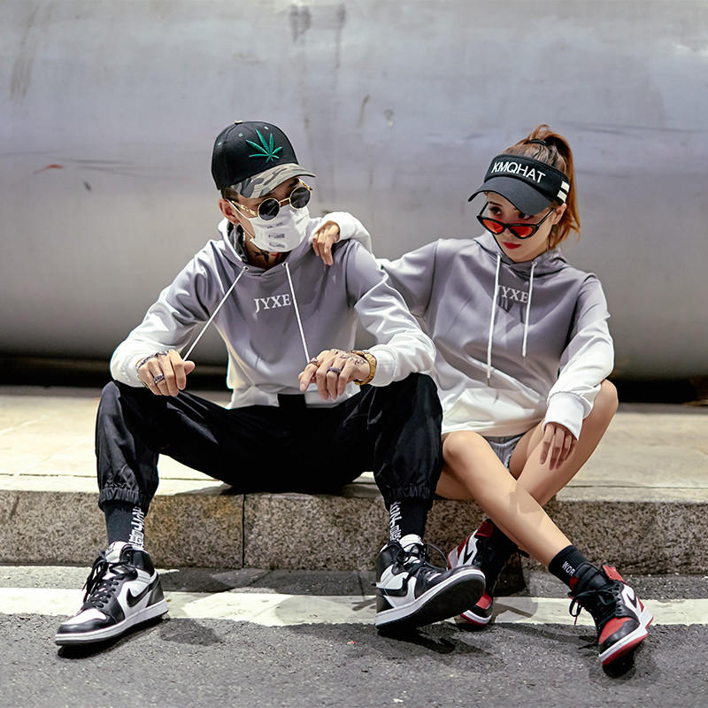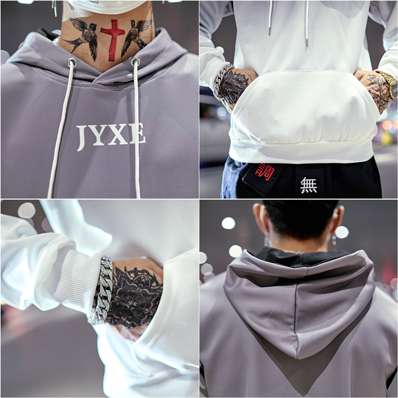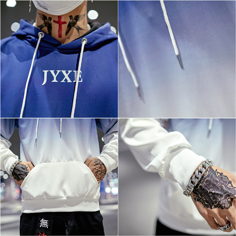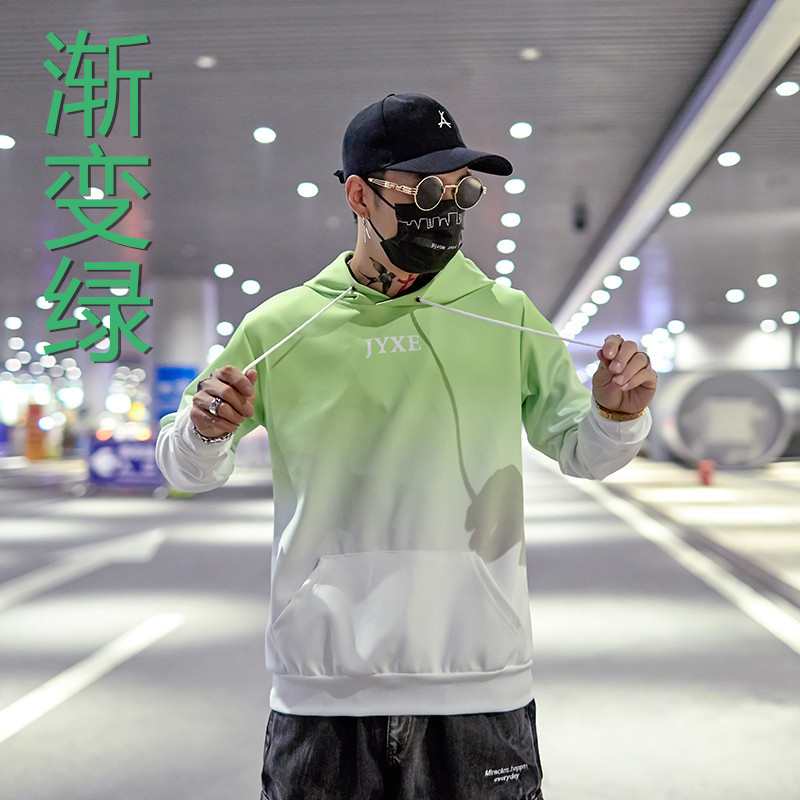 2019春秋裝漸變拼色男女款情侶套頭連帽衫寬松學生班服衛衣外套潮1入
