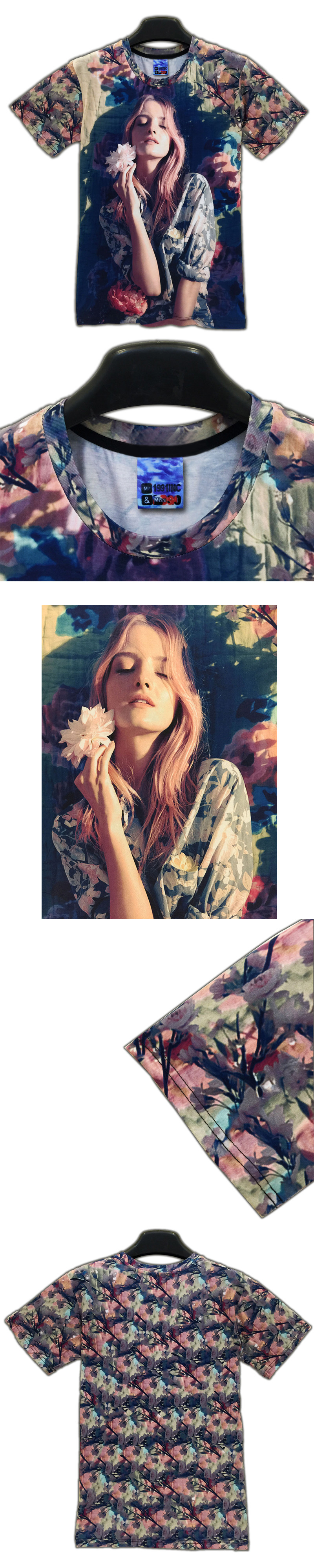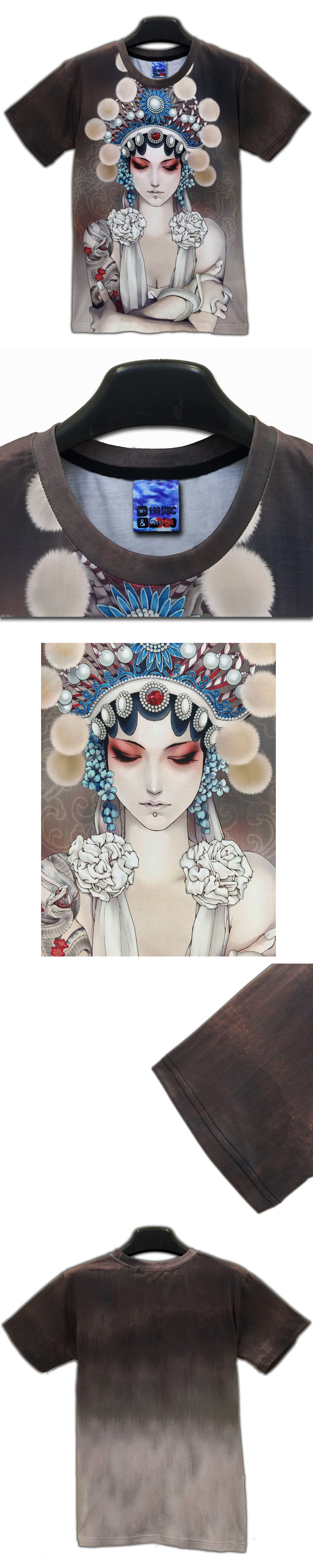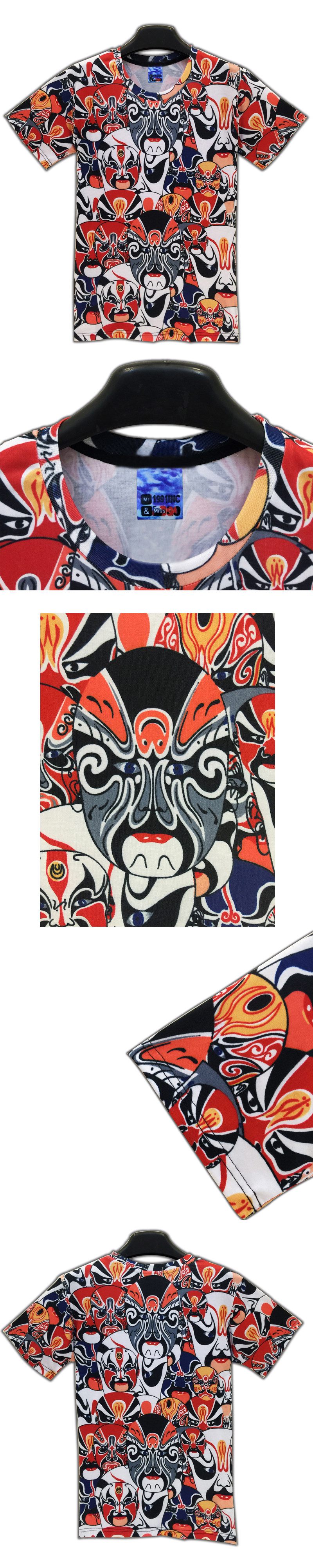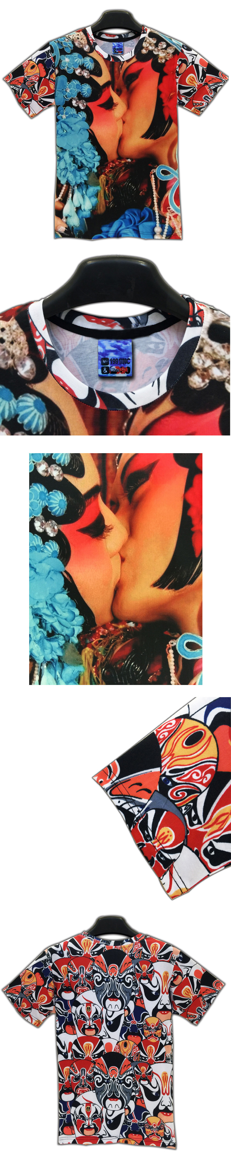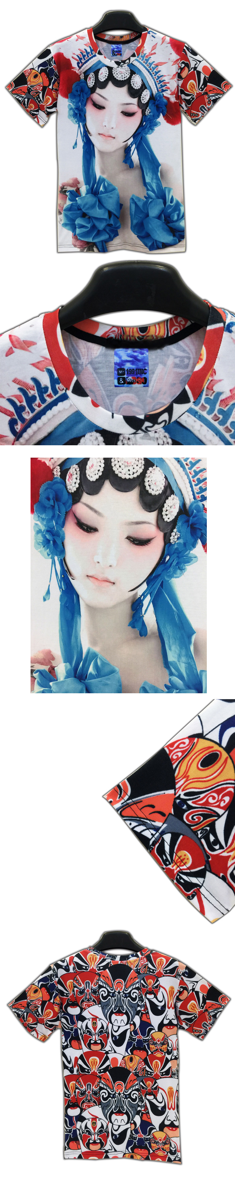 個性美女圖案創意3d立體印花t恤衫男女半短袖中國風京劇衣服夏季1入