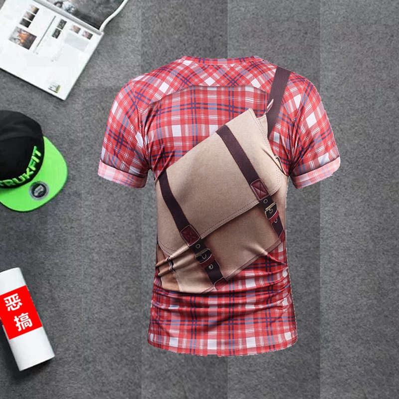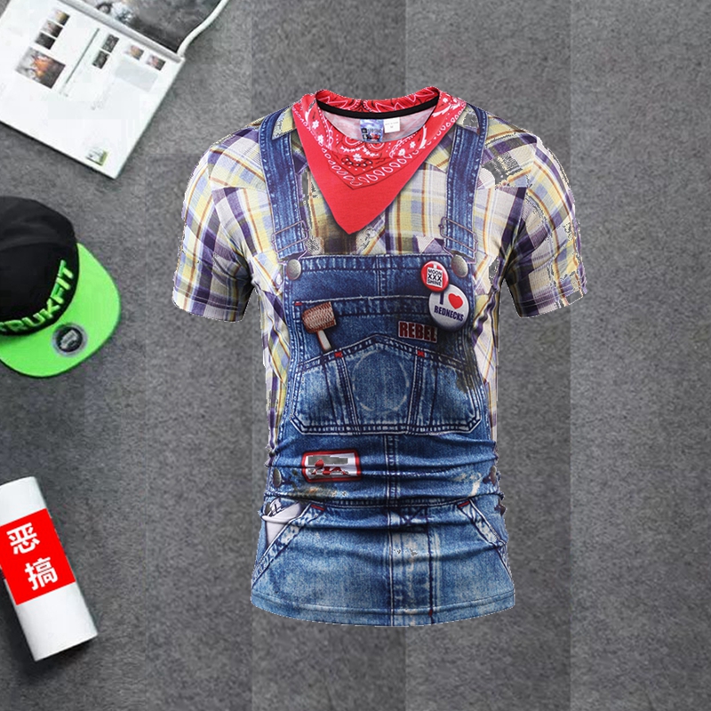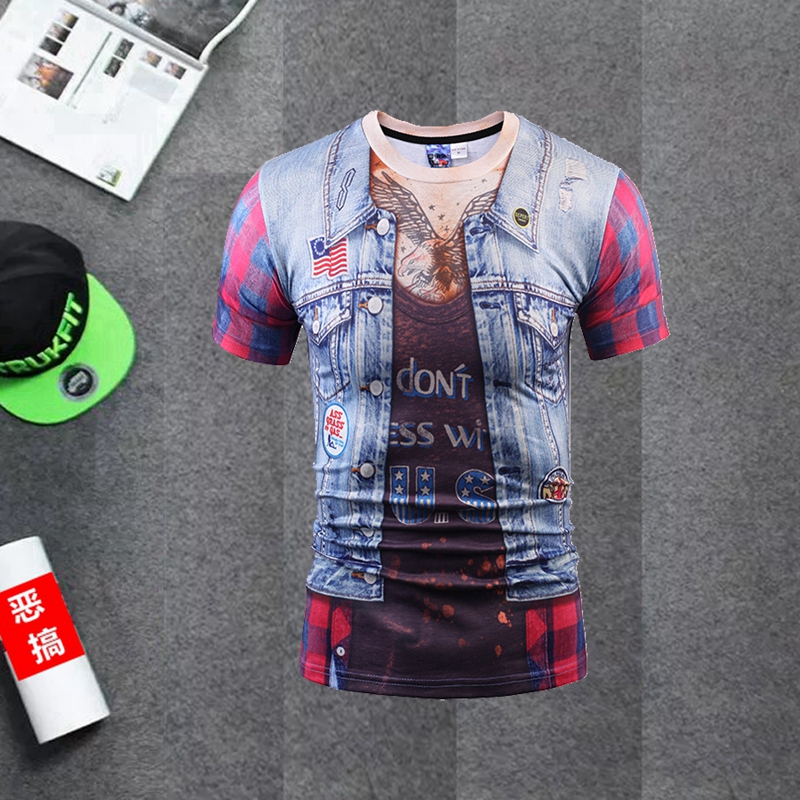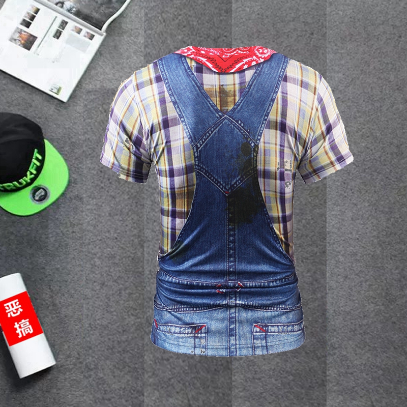 創意搞笑肌肉男t恤3D紋身衣服立體圖案個性假68塊腹胸肌短袖t恤潮1入