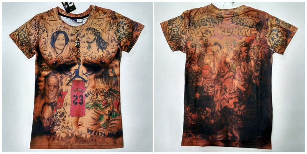 非主流男裝夏季性感肌肉短袖t恤古惑仔黑社會紋身衣服3D大碼小衫1入