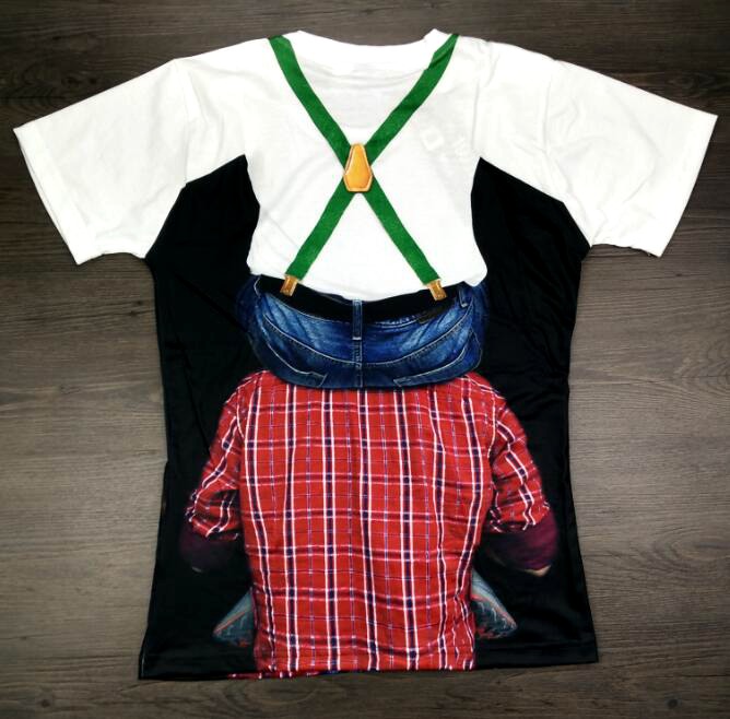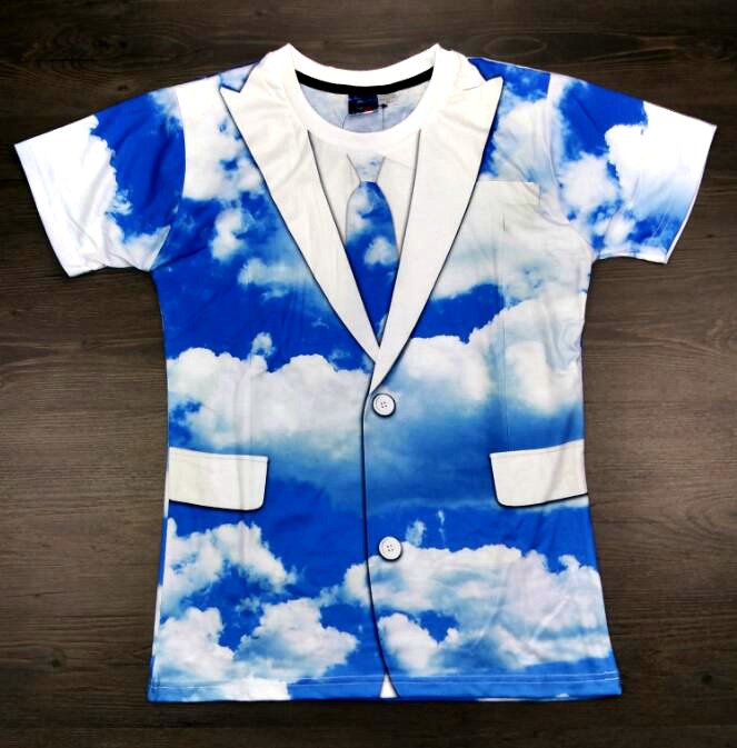 2018新款男士個性創意假兩件印花T恤惡搞怪西裝領帶圖案短袖衫潮1入