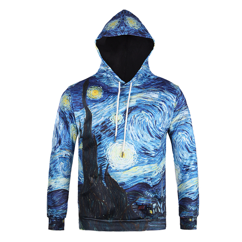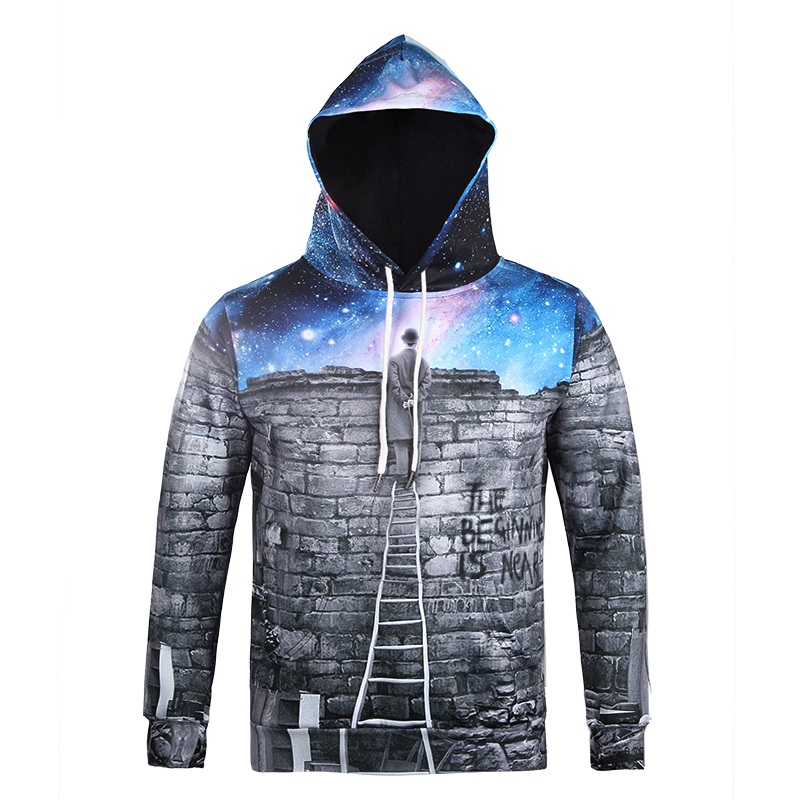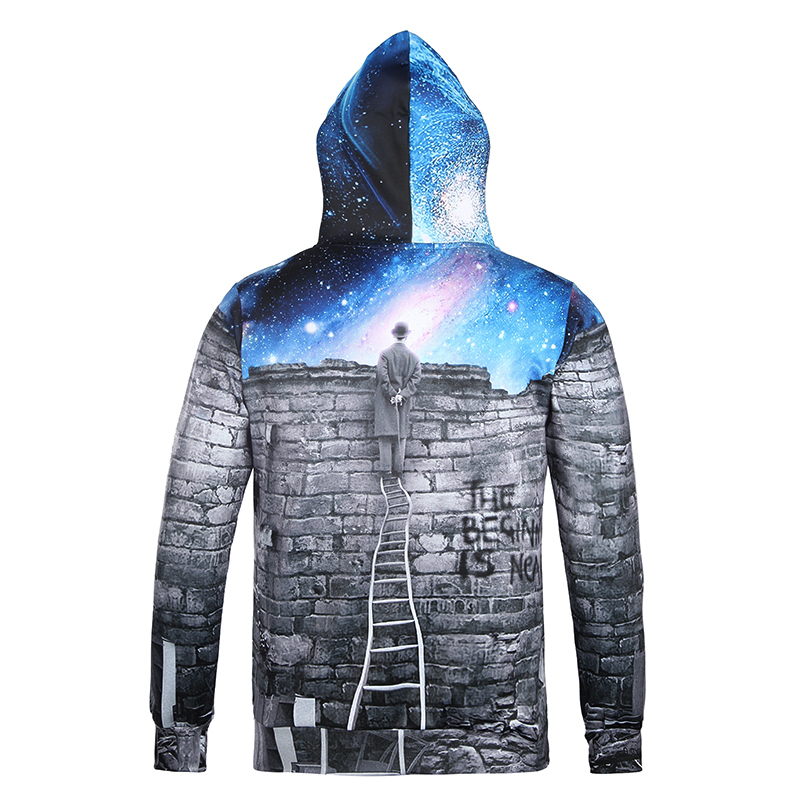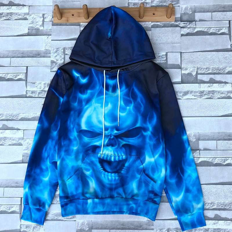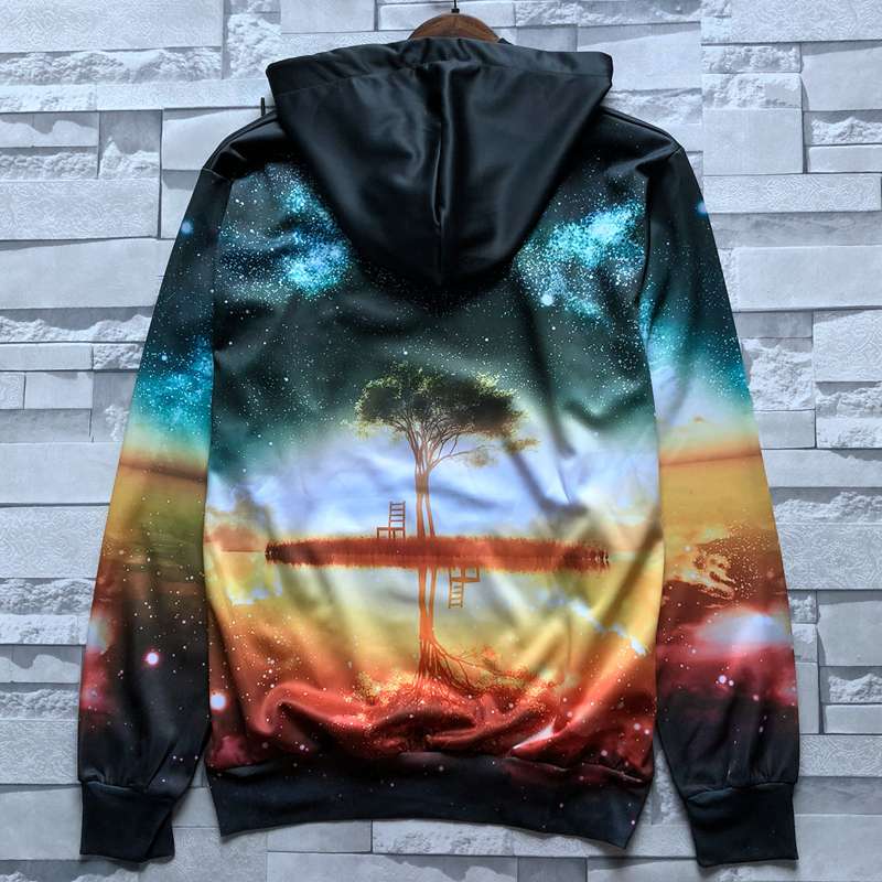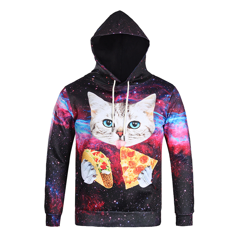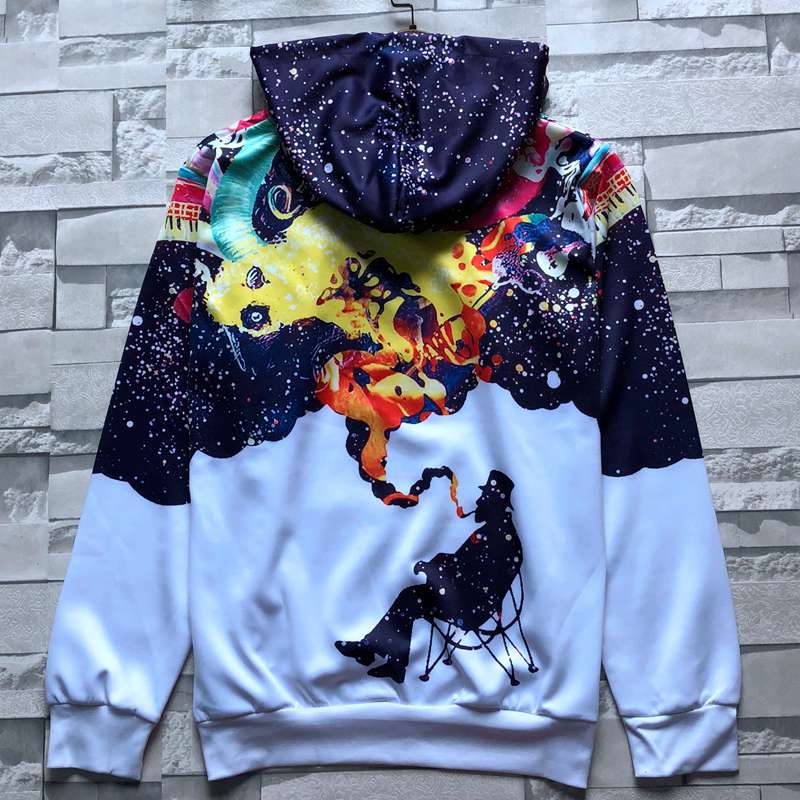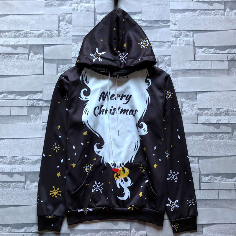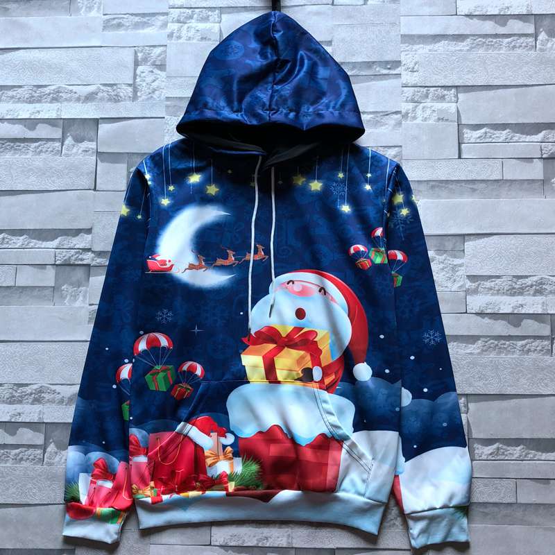2019秋季新款3D印花圣誕節老人圖案衛衣服男潮連帽寬松情侶裝秋裝1入