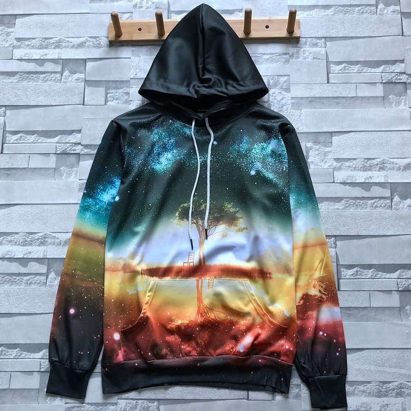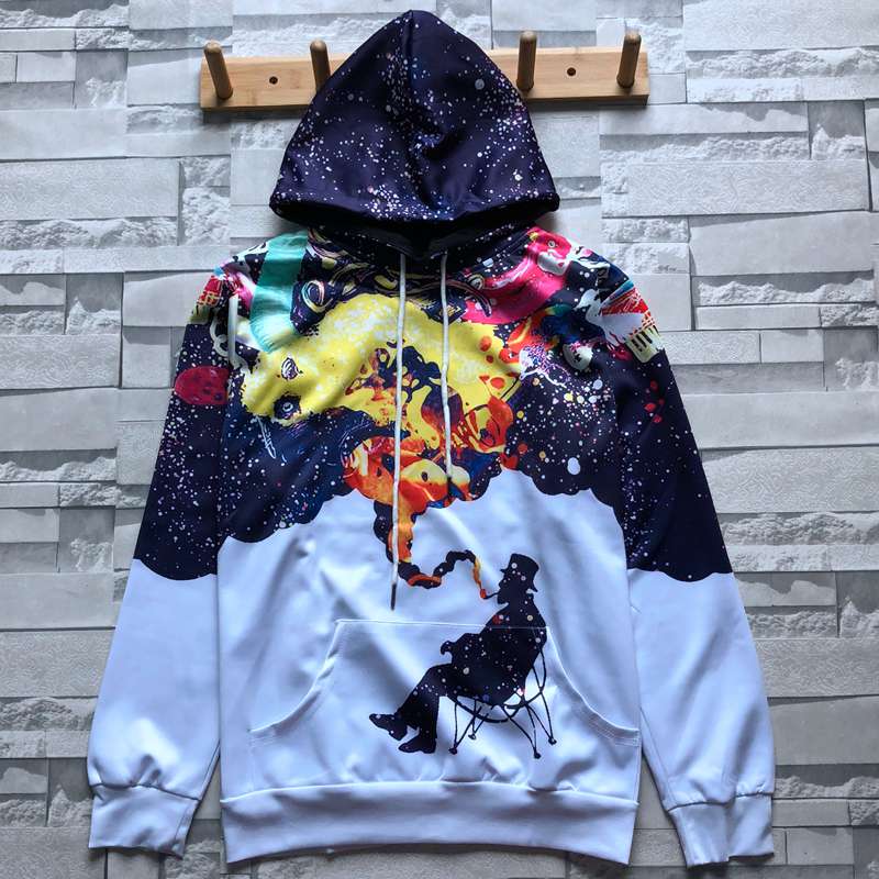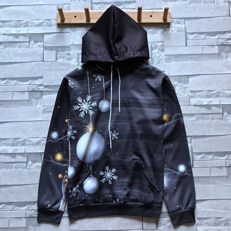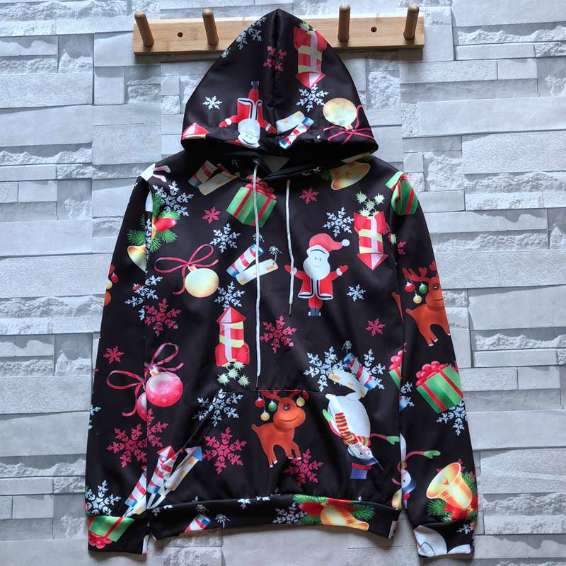 2019秋季新款3D立體圖案印花圣誕老人衛衣男潮連帽寬松情侶裝秋裝1入