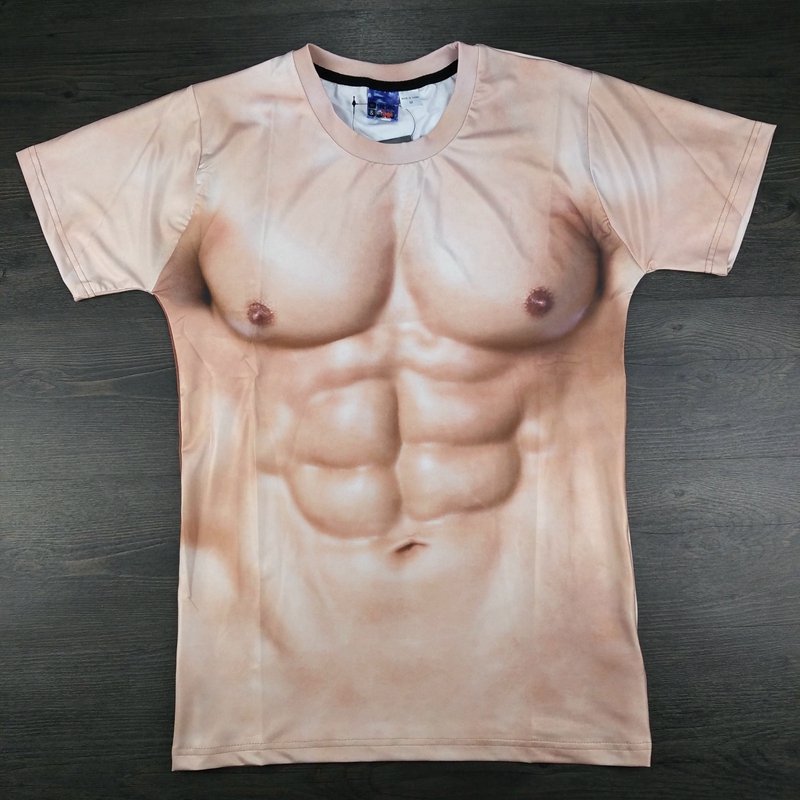 創意搞笑肌肉男t恤3D紋身衣服立體圖案個性假68塊腹胸肌短袖t恤潮1入