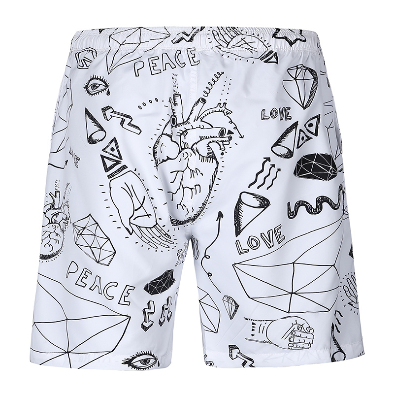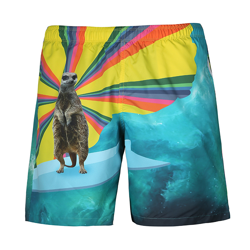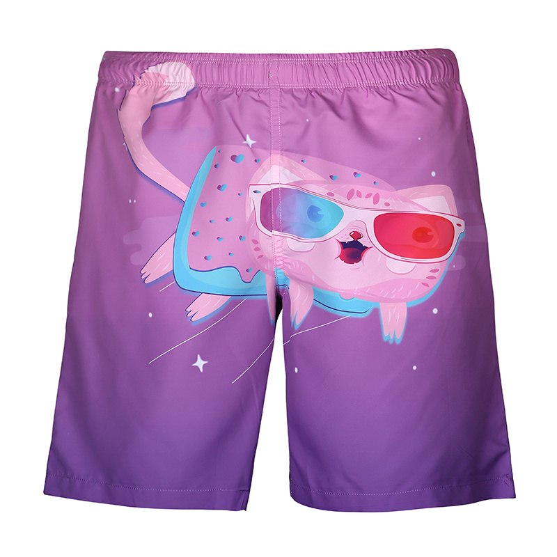 2016春夏新款3D字母小貓太空貓卡通小鯊魚印花男外貿時尚沙灘短褲1入