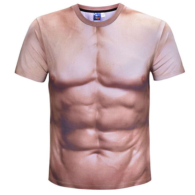 [2]夏季短袖T恤男士裝3D個性創意肌肉圖案惡搞怪衣服腹肌性感印花潮1入