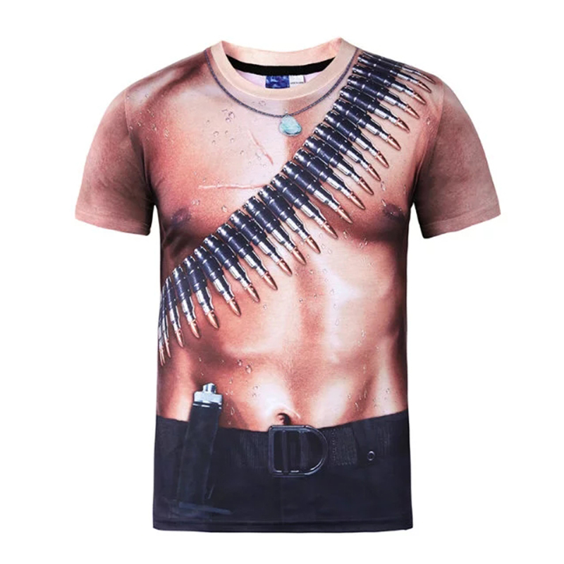夏季短袖T恤男士裝3D個性創意肌肉圖案惡搞怪衣服腹肌性感印花潮1入