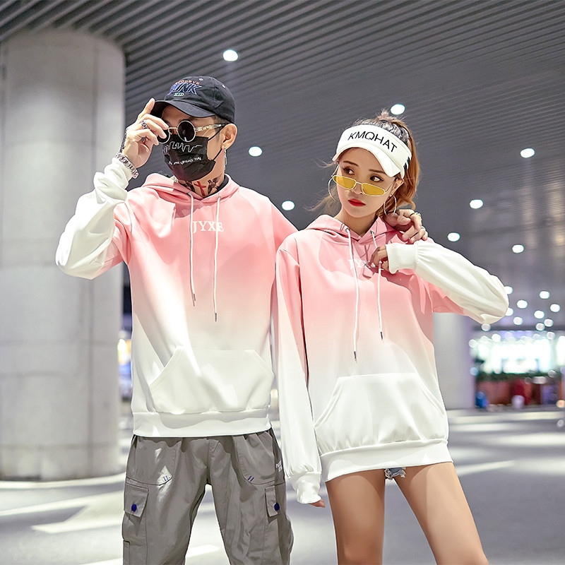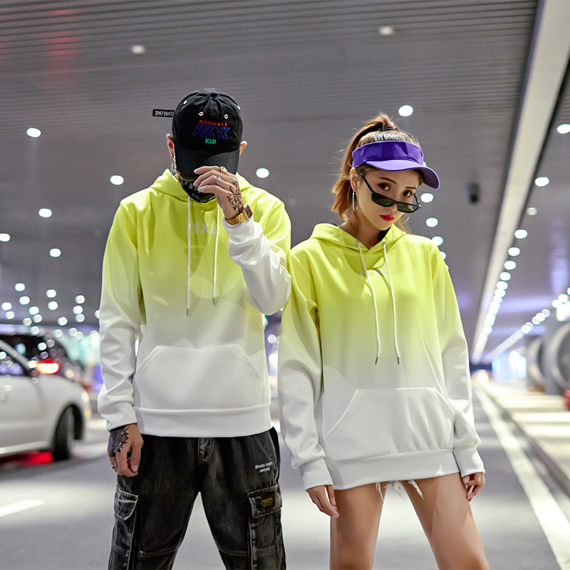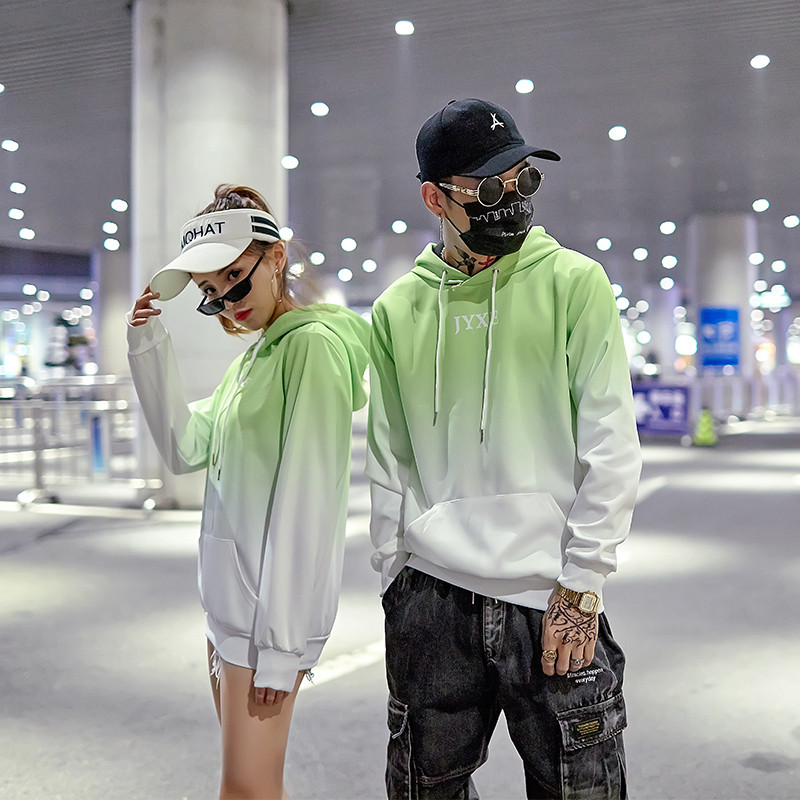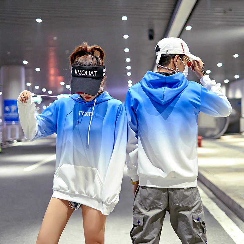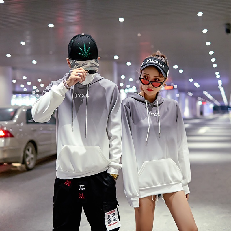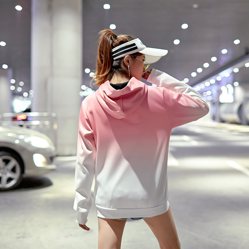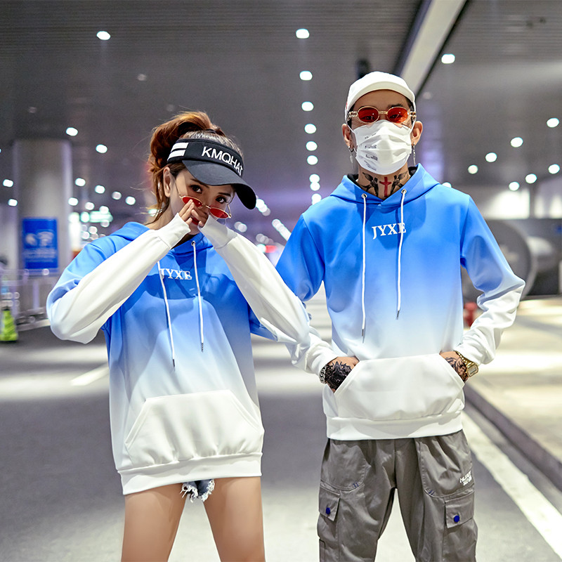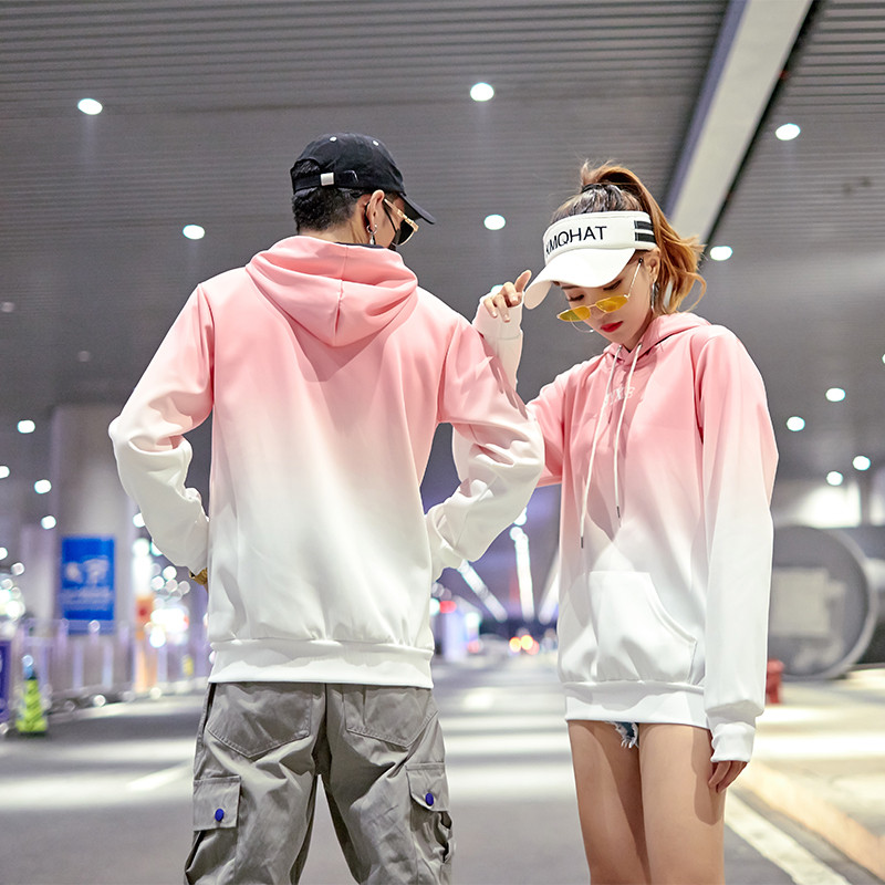 2019春秋裝漸變色渲染男女款情侶套頭連帽衫寬松衛衣小清新外套潮1入