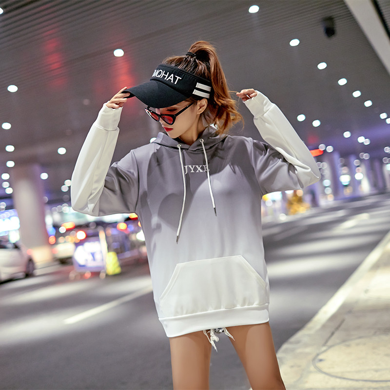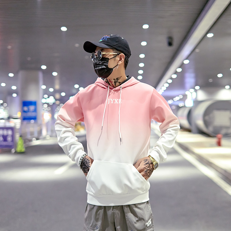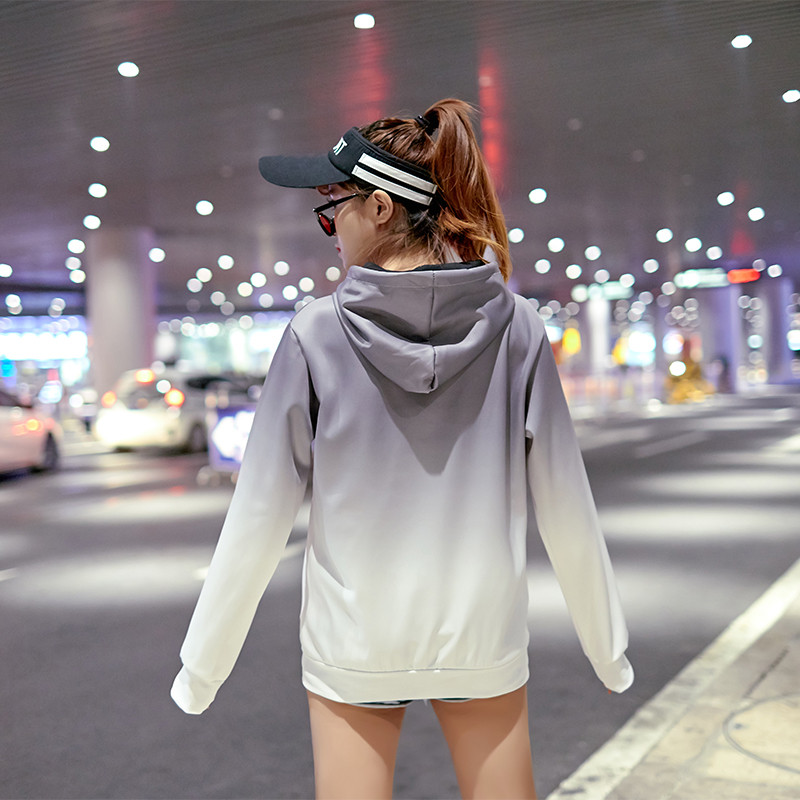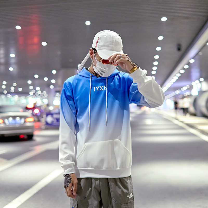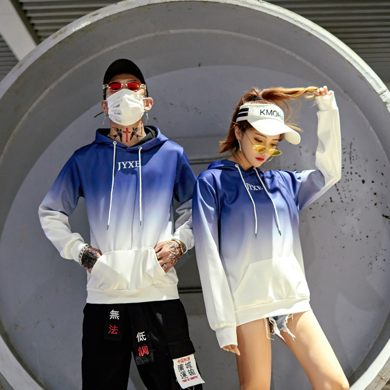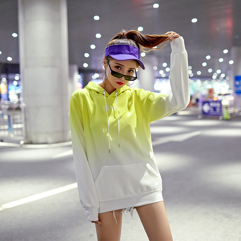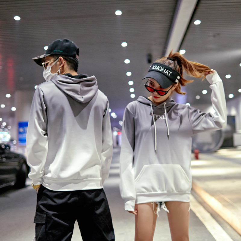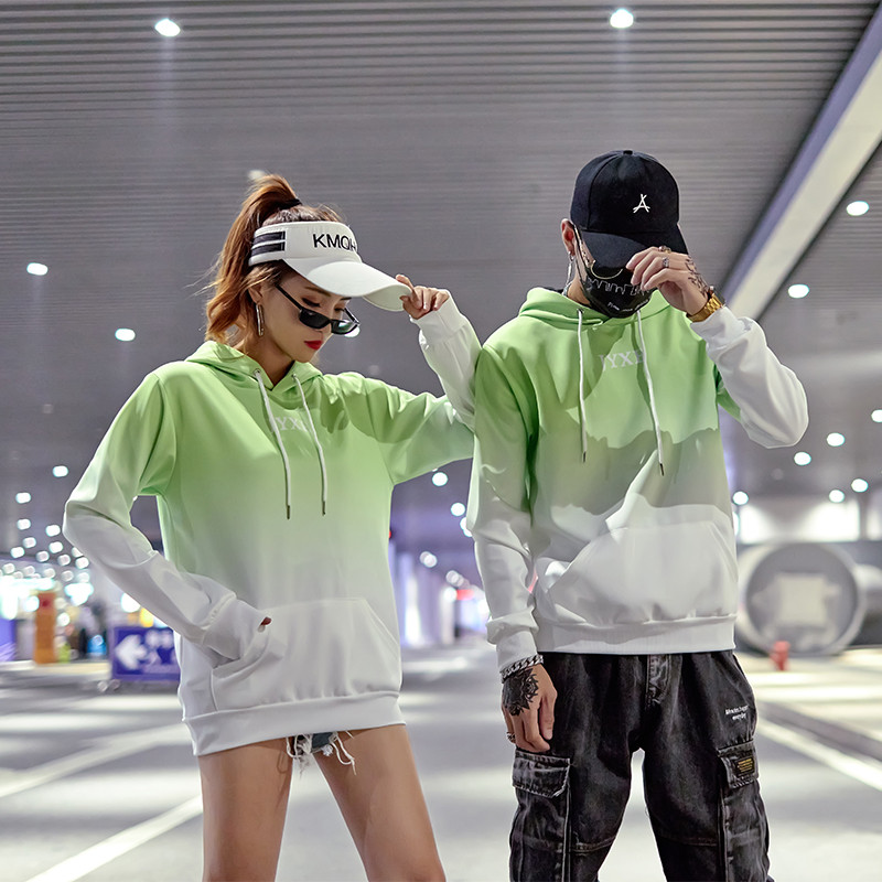 2019春秋裝漸變色渲染男女款情侶套頭連帽衫寬松衛衣小清新外套潮1入