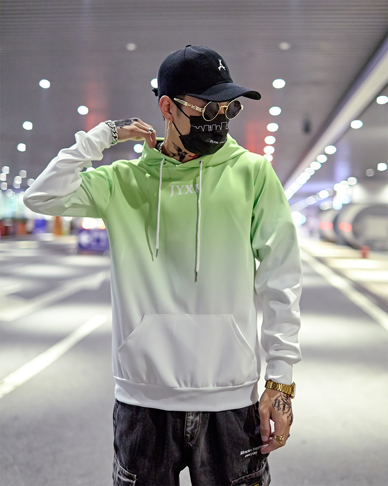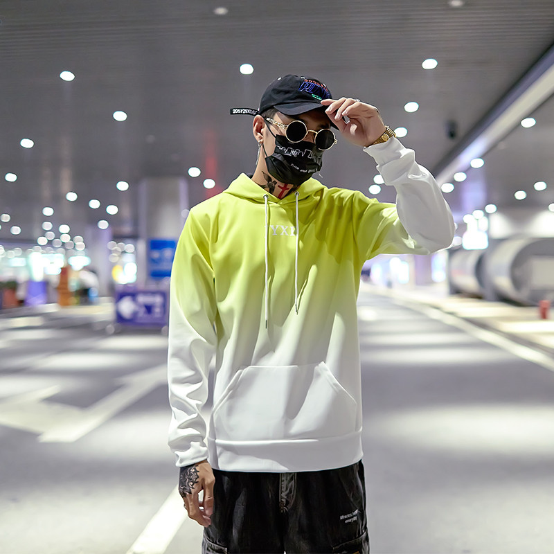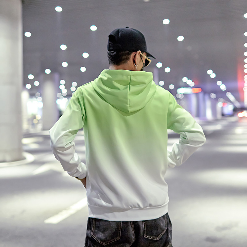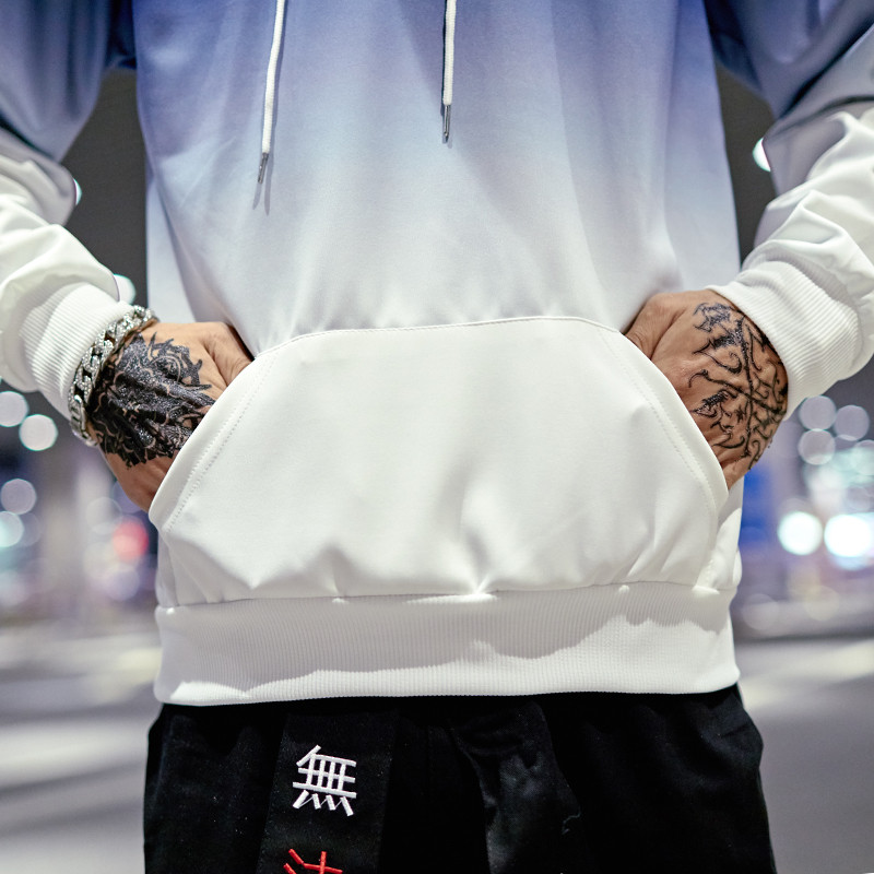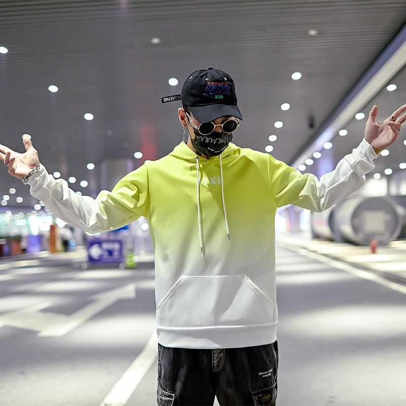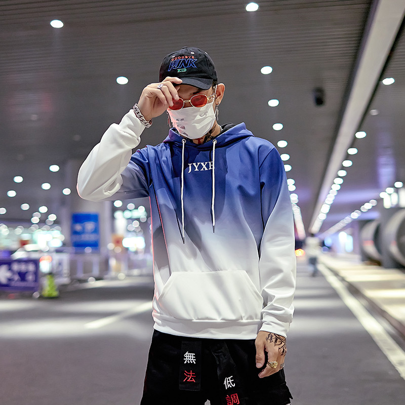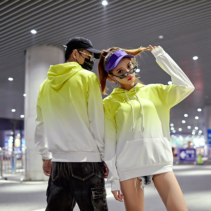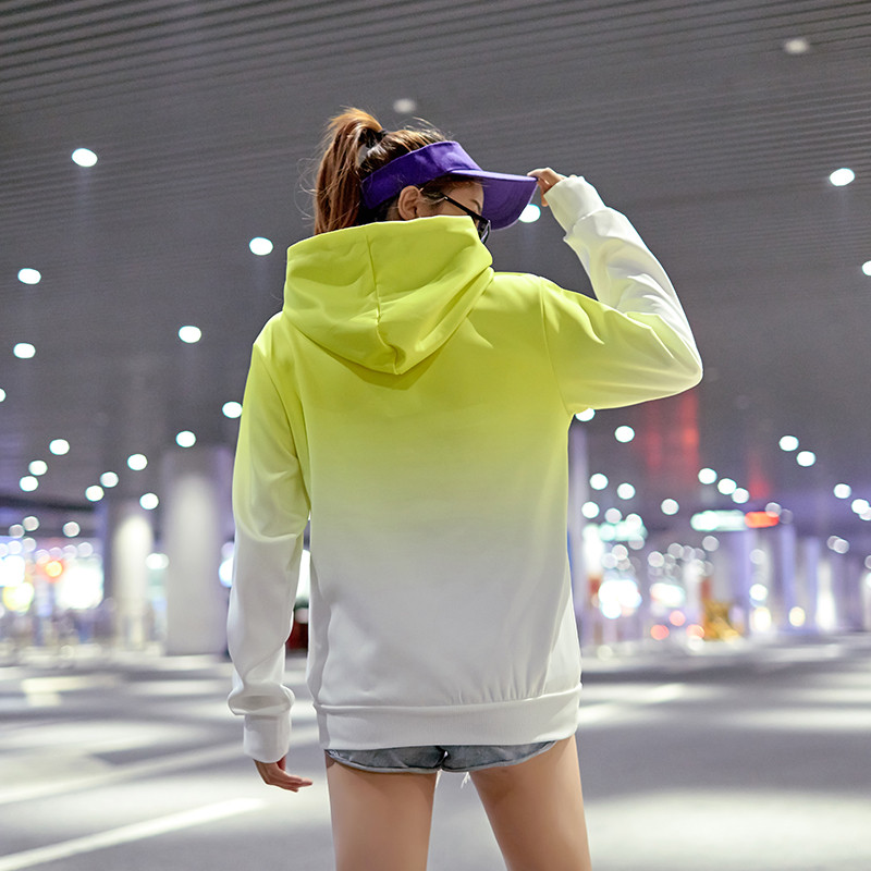 2019春秋裝漸變色渲染男女款情侶套頭連帽衫寬松衛衣小清新外套潮1入